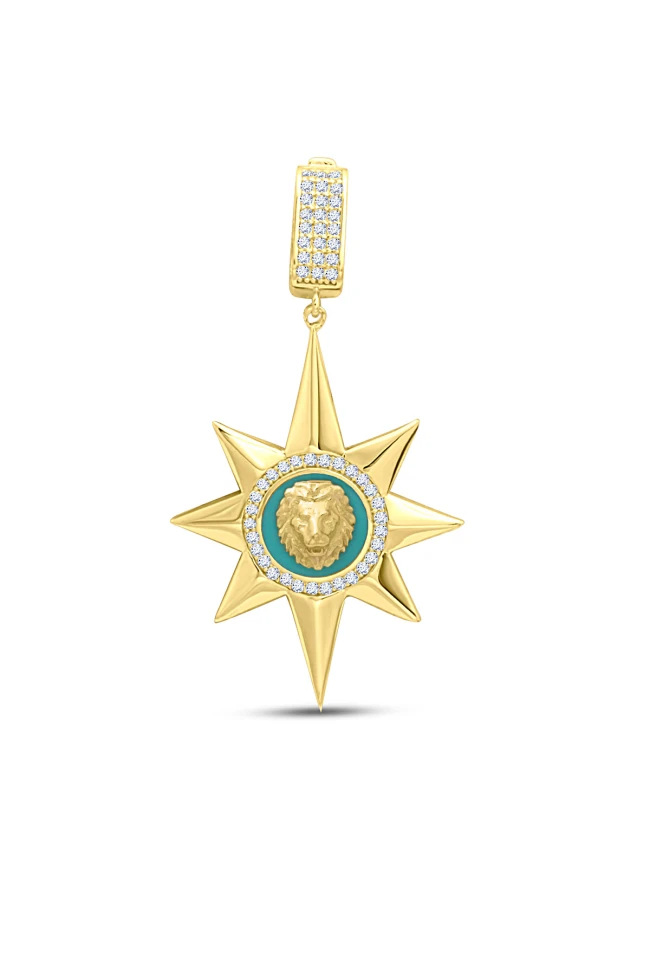 Spor Ve Modern Tarz  Oldukça Şık Bir Modele Sahip  5.35 Gr. Ağırlığında 14 Ayar Altın Kuzey Yıldızı Model Aslan Erkek Kolye Ucu.