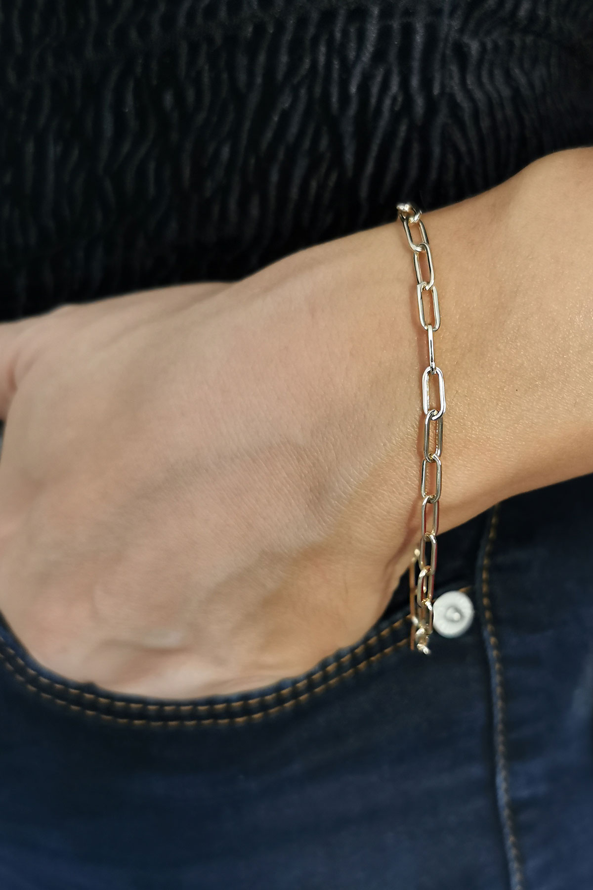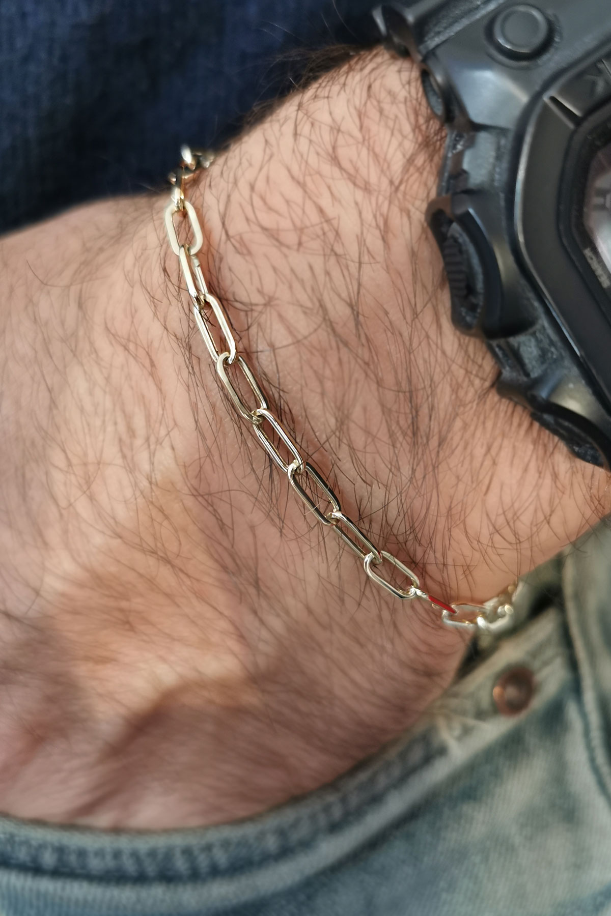 Ataç Zincir Detaylı 20 Cm Boyunda Işıl Işıl 2.40 Gr. Ağırlığında 14 Ayar Altın Spor Unisex Bileklik.