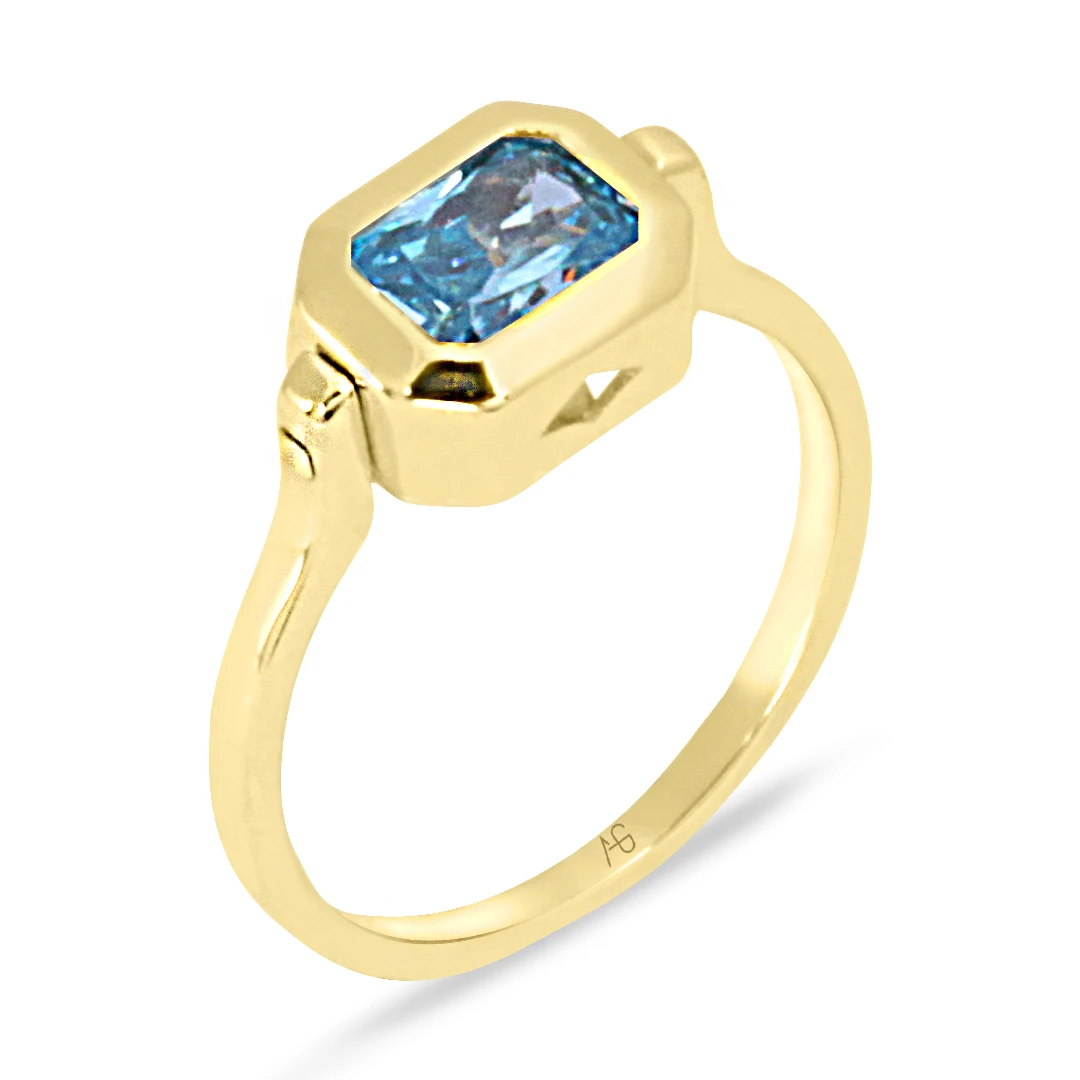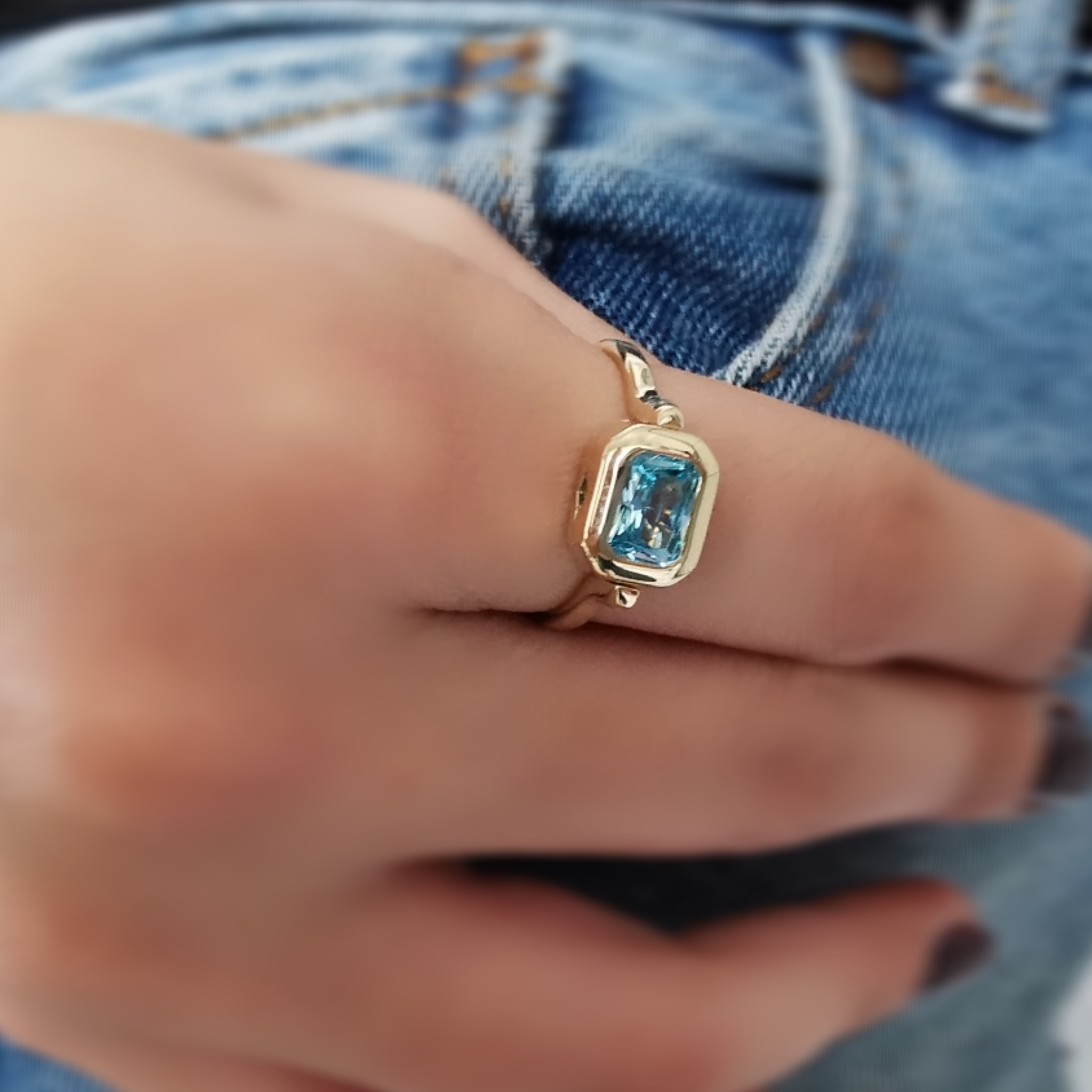Taş Yuvası Döner 14 Ayar Sarı Altın Aquamarine Baget Taşlı Spor Yüzük.