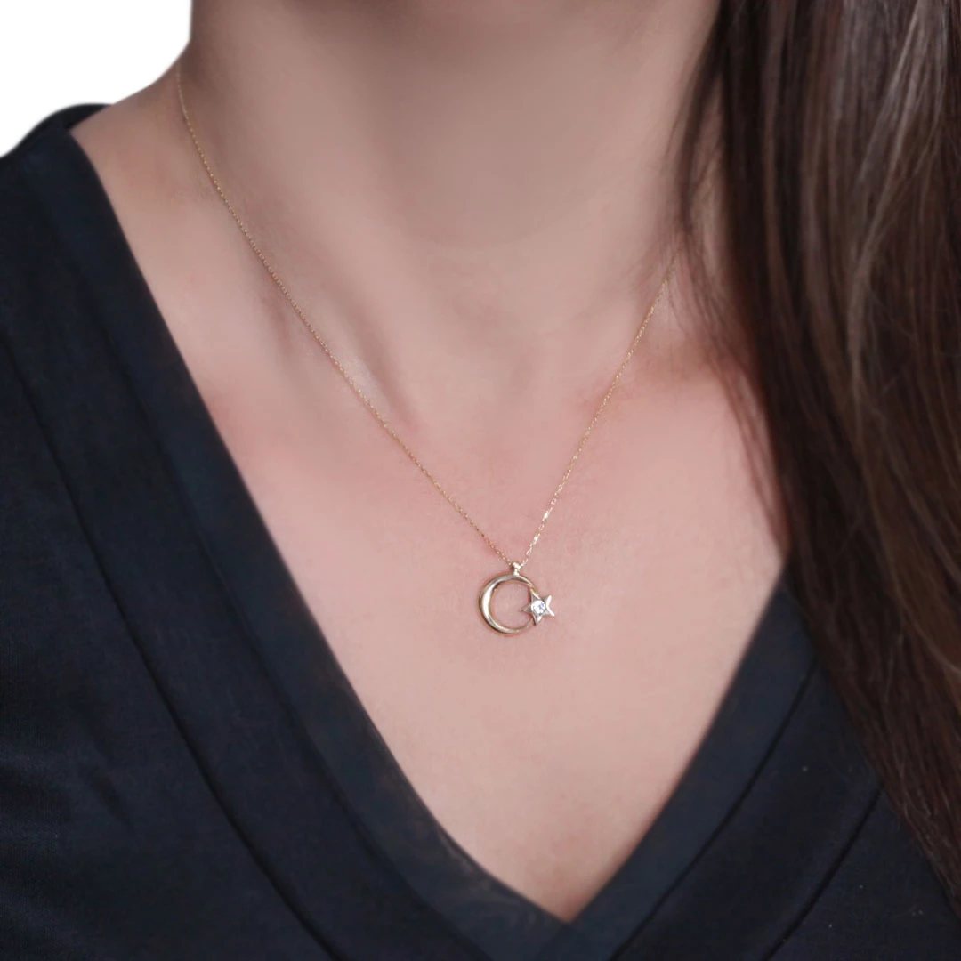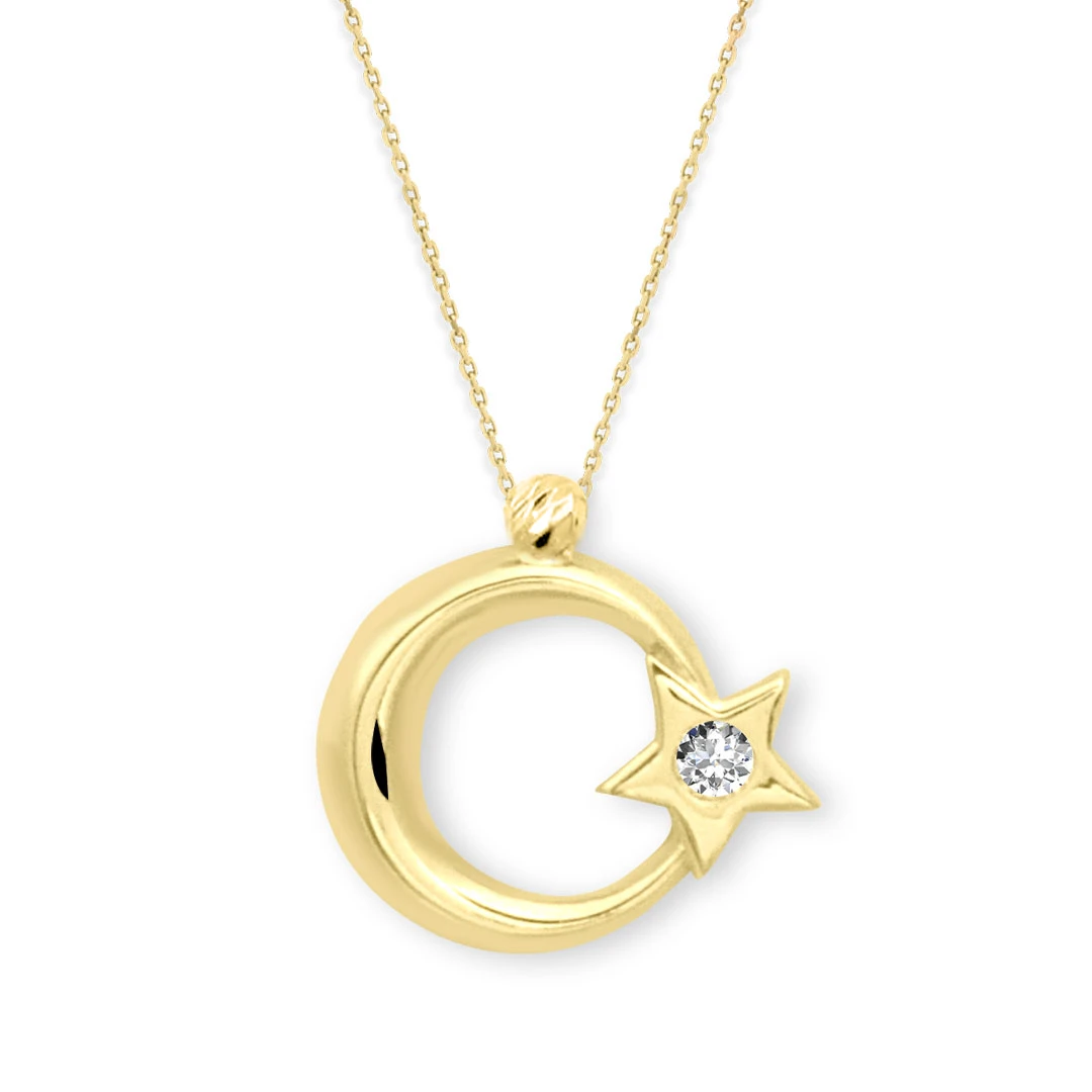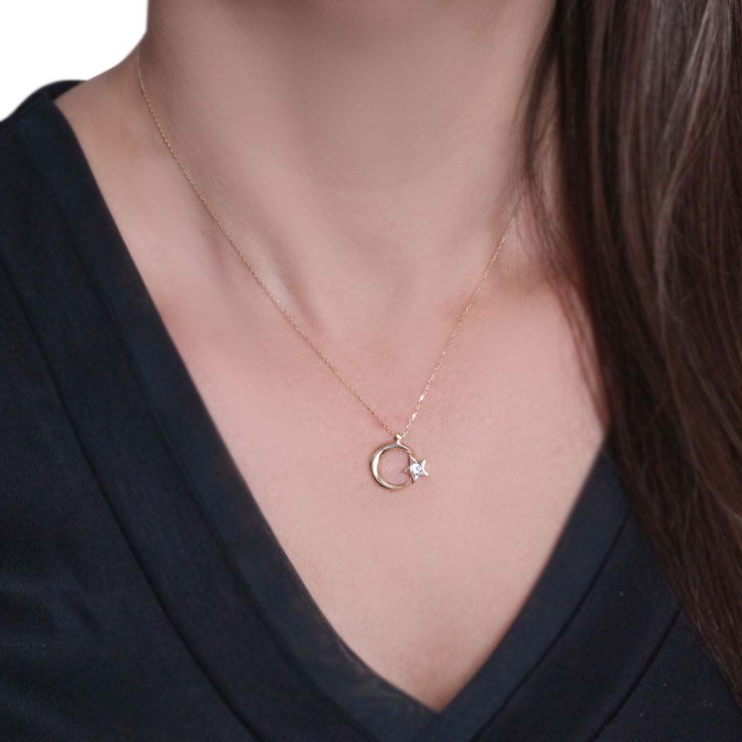 45 Cm zincirli 2,.15 gr. 14 ayar altın milli gururumuz olan şanlı bayrağımızın temsilcisi altın 1.5 cm boyutunda yıldızı taşlı ay yıldız kolye. Sadece milli günlerde değil, milli gururunu her daim yüreğinde taşıyanların boynundan ayırmak istemeyeceği harika bir tasarım. *Ürünlerimiz faturalıdır güvenle satın alabilirsiniz, özel hediye kutusunda ücretsiz kargo ile gönderilecektir.
