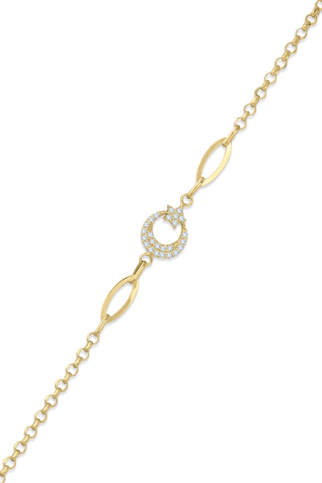 Al Bayrağımızın Simgesi Zirkon Taşlı 20 Cm Boyunda 14 Ayar Işıl Işıl Günlük Kullanıma Uygun 2.60 Gr. Ağırlığında Altın Milli Gururumuz  Ay Yıldız Bileklik.