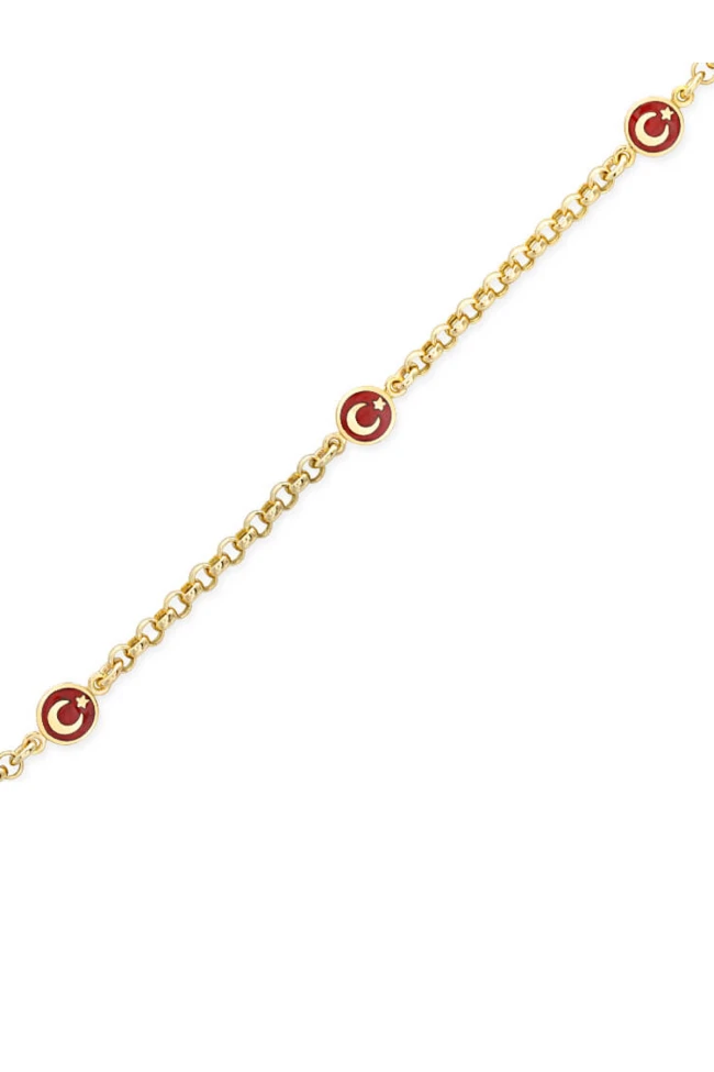 14 Cm boyunda günlük olarak da kullanıma uygun halka zincirli 14 ayar 2.90 gr ağırlığında altın ay yıldız detaylı çocuk bilekliği.