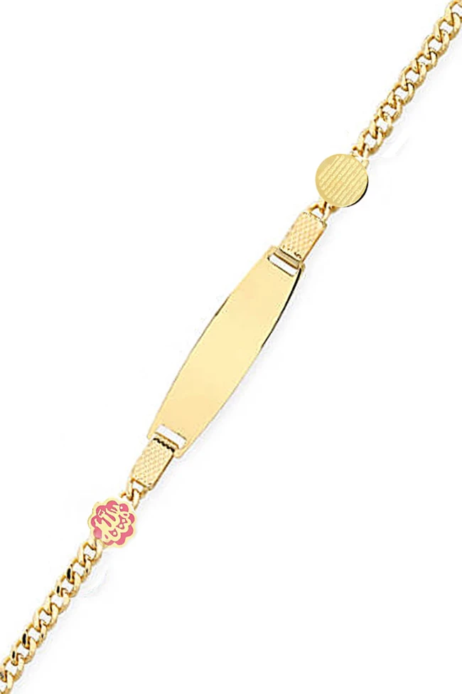 14 Cm boyunda günlük olarak da kullanıma uygun gurmet zincirli 14 ayar 2..90 gr ağırlığında altın pembe mineli Allah yazılı ve ayetel kürsi dua detaylı çocuk künyesi. Modele ücretsiz olarak isim yazdırabilirsiniz, kız bebek için kullanıma uygundur.