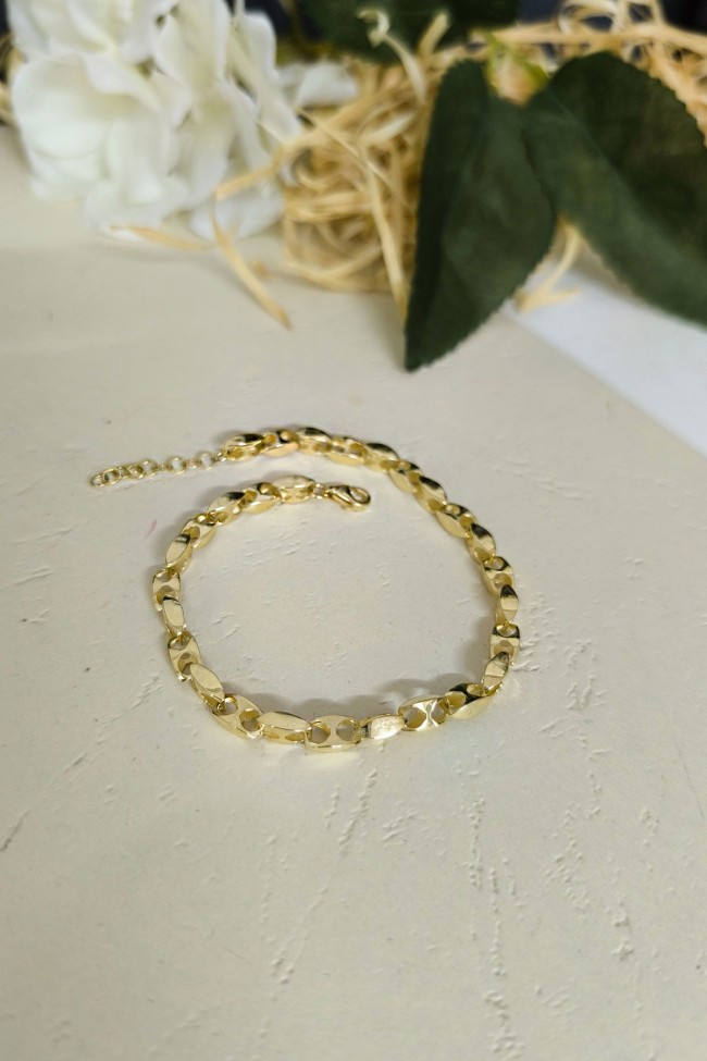 14 Ayar 19+2 cm şık ve modern tasarım günlük kullanıma uygun gemici tasarım, taşsız, ışıl ışıl özel trend badem model 4.90 gram ağırlığında altın bileklik.