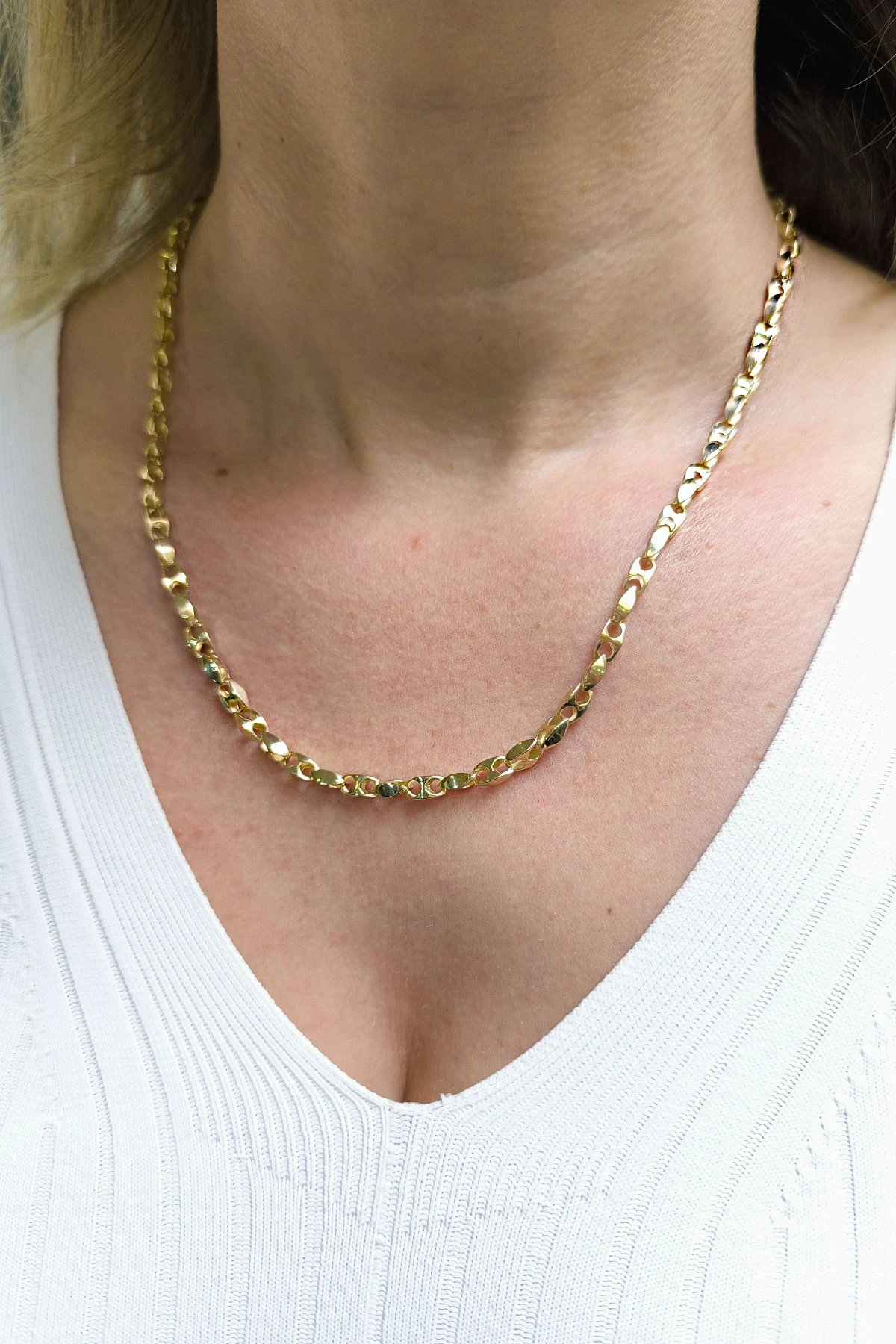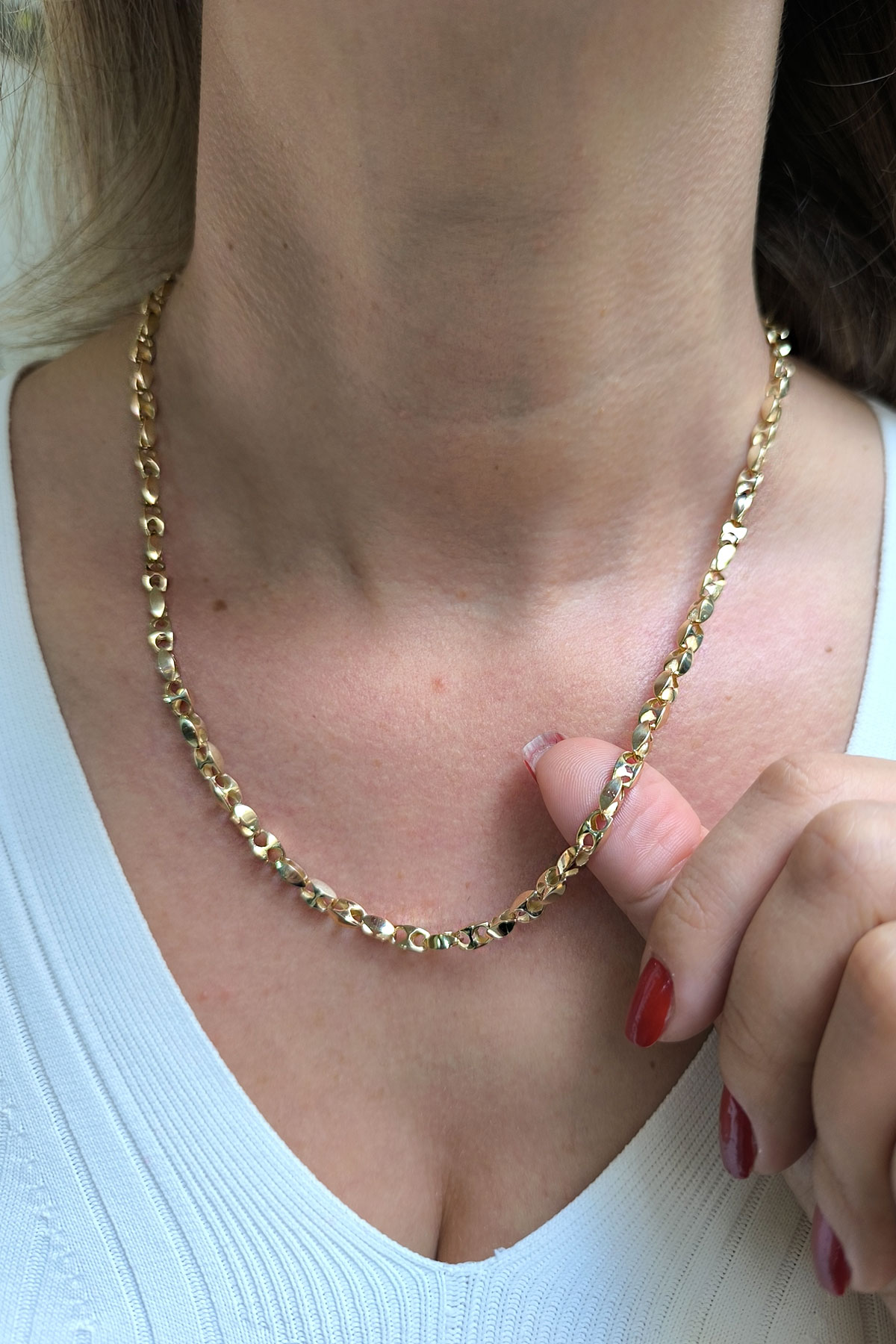 14 Ayar 50+2 cm unisex model şık ve modern tasarım günlük kullanıma uygun, küp tasarım, taşsız ışıl ışıl özel trend tasarım 12.60 gram ağırlığında altın kolye.