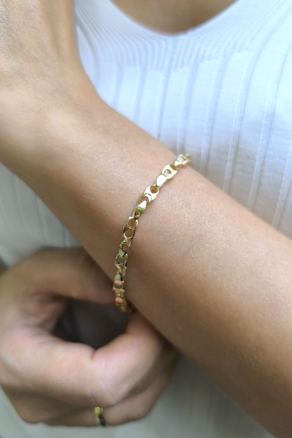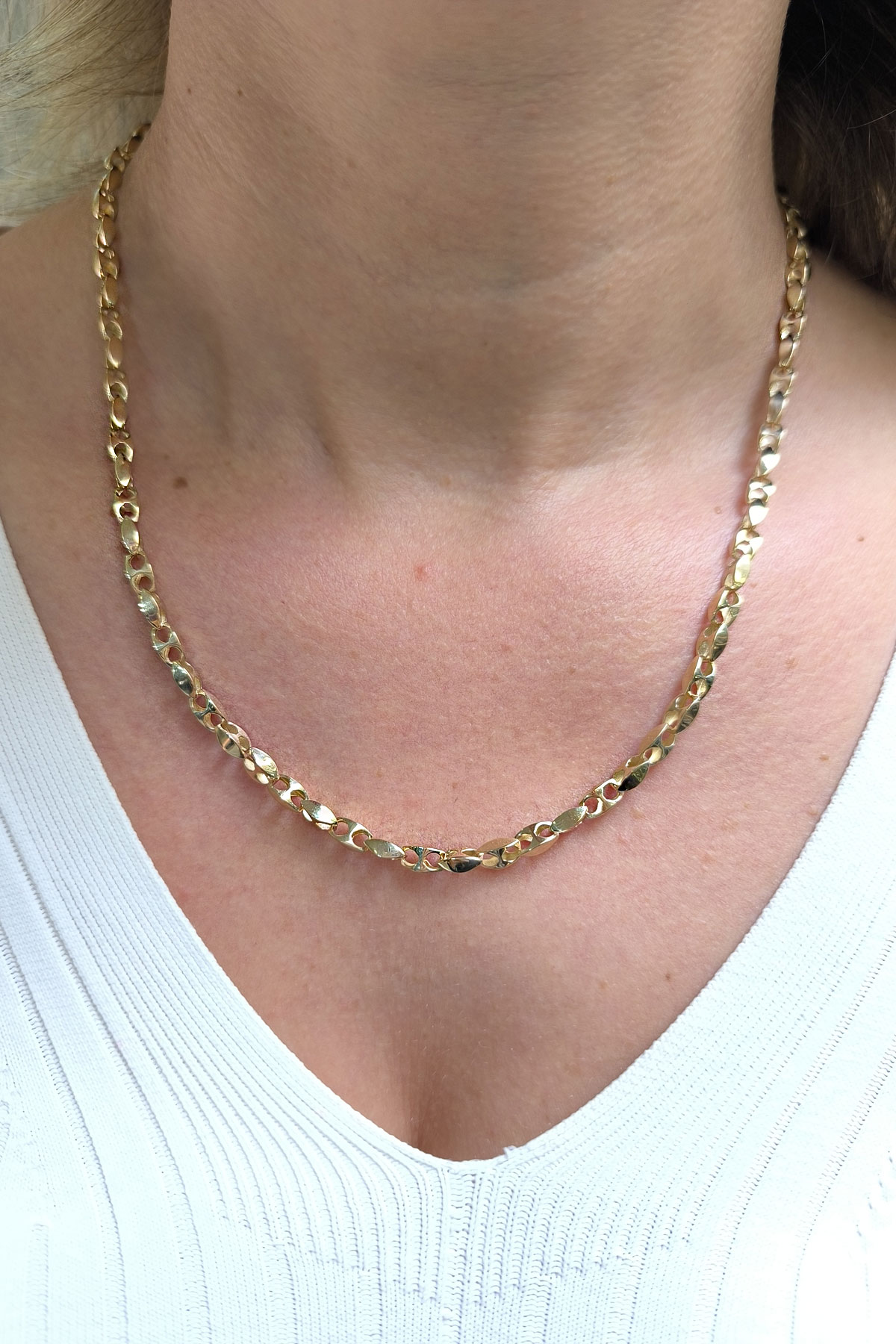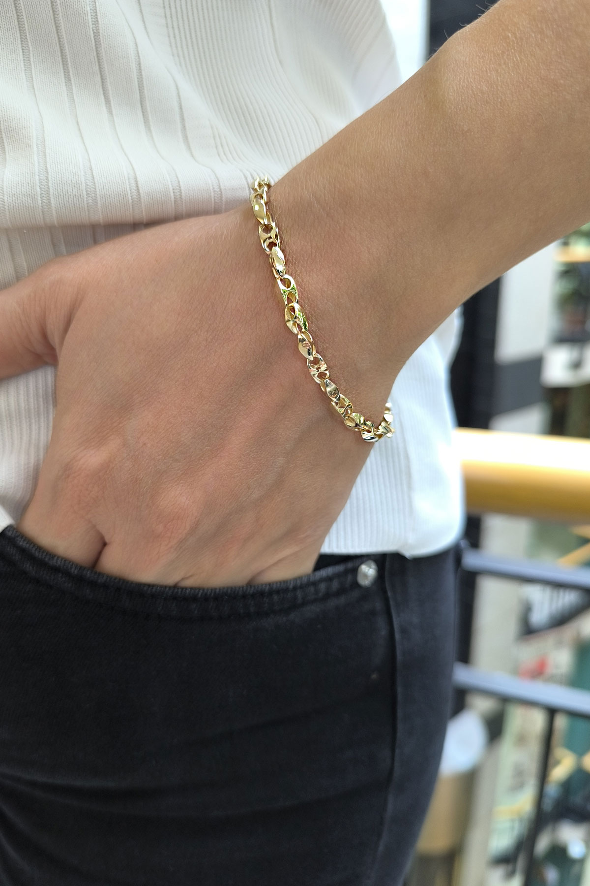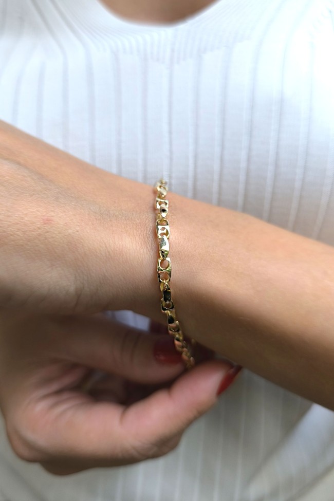Spor tarz 19+2 Cm Boyunda Bileklik, 50+2 Cm Boyunda Kolyesi Olan Model 17.50 Gr. Ağırlığında 14 Ayar Altın, Şık Ve Modern, Günlük Kullanıma Uygun, Badem Gemici Tasarım Unisex Bileklik Kolye Set.
