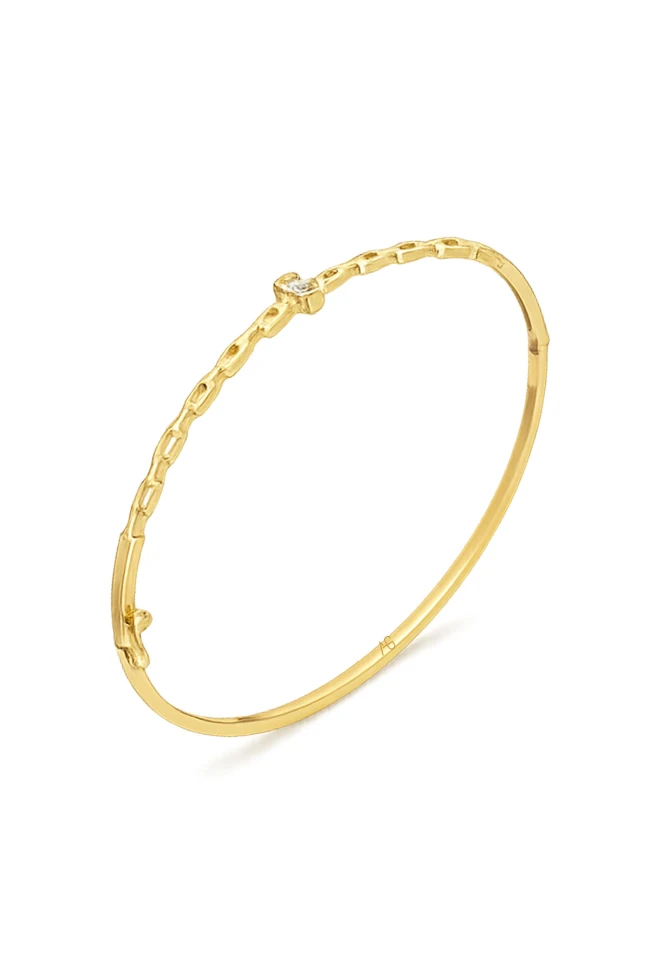 Zarafetin en zarif ve göz alıcı hali… Baget taşlı zincir detaylı bu kombin bilezik, klasik altının sıcak ışıltısını modern bir dokunuşla buluşturuyor. İncelikle tasarlanmış burgu spor formu bileğinizde zarif ama etkileyici bir imza gibi parlıyor. Günlük şıklığa hareket katarken, özel anlarda stilinizi tamamlayan zarif bir detay haline geliyor.