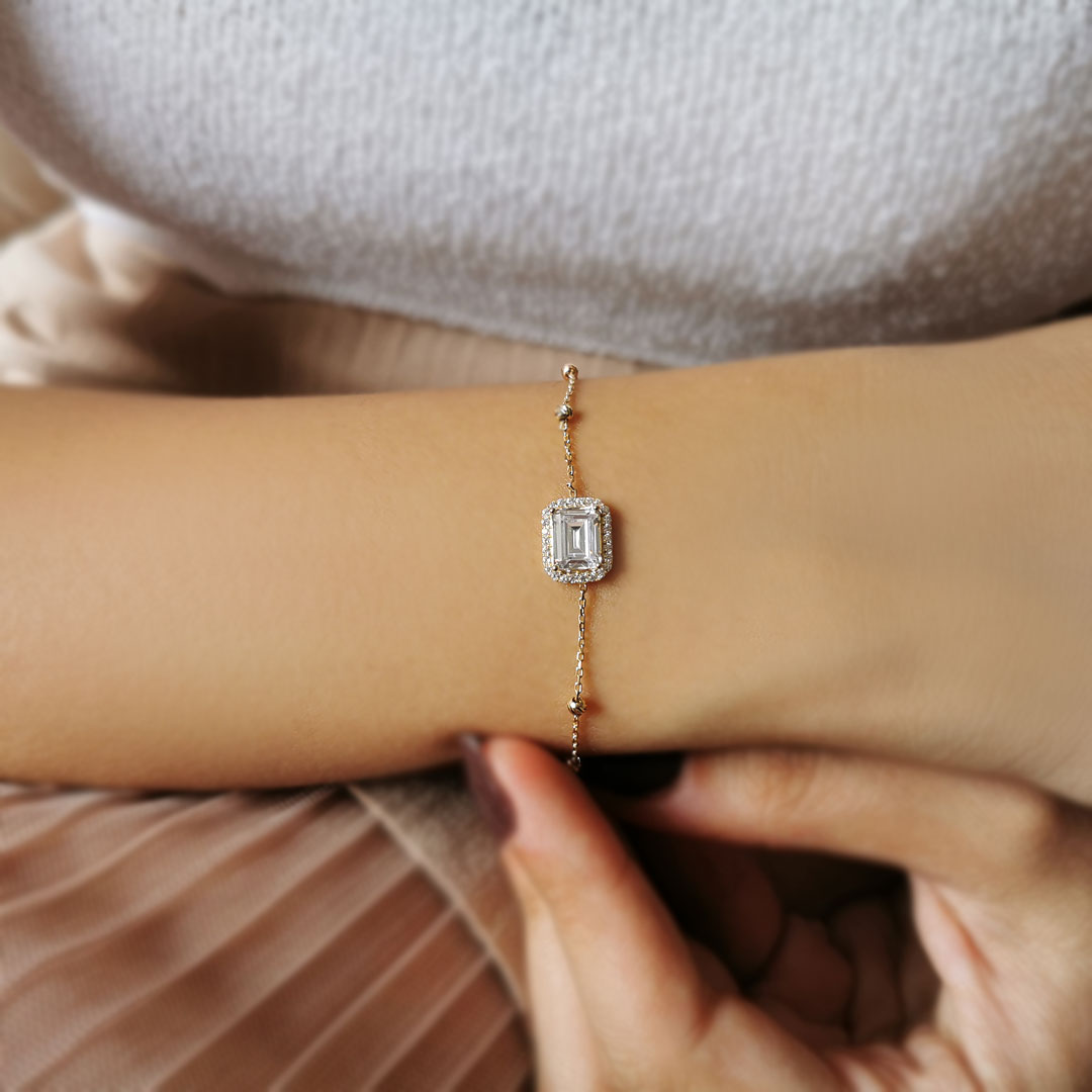 18 Cm boyunda spor hafif tasarımı ile günlük olarak da kullanabileceğiniz 2.15 gr ağırlığında 14 ayar altın baget taş detaylı minimal toplu bileklik.