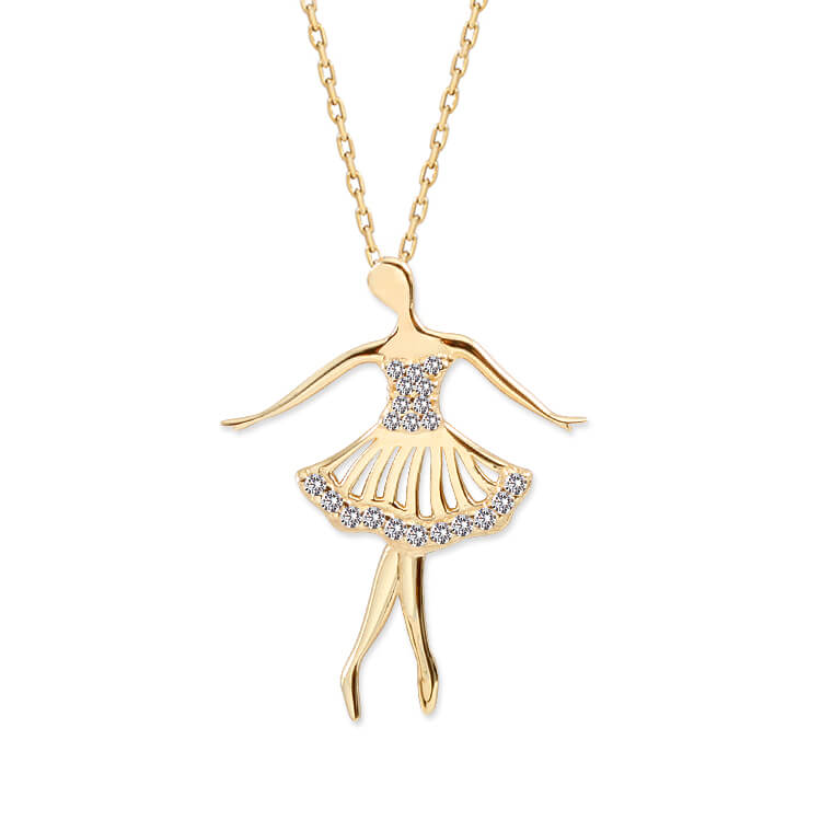 14 Ayar altın dans tutkulu sevdiklerinize armağan edebileceğiniz zarif tasarımlı balerin kolye.