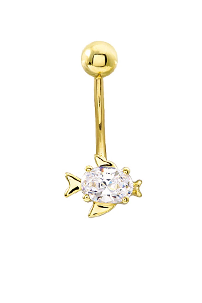 Balık Model Işıl Işıl Zirkon Taşlı 14 Ayar Altın Göbek Piercingi. İnsan vücuduna en uyumlu değerli maden olan altın göbek piercinglerini sağlıkla ve güvenle uzunca seneler kullanabilirsiniz.