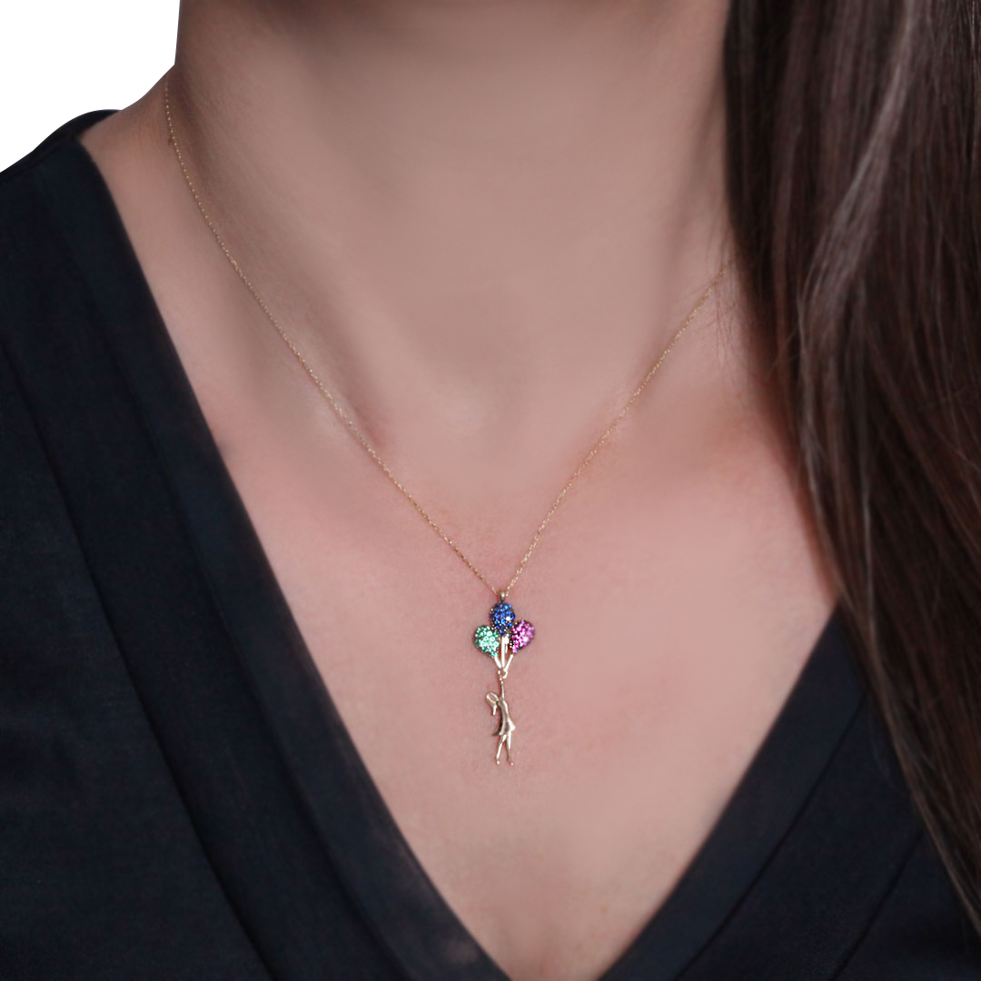 Renkli taşlı enerji dolu kombinasyonu ile oldukça şık ve havalı bir duruşa sahip altın baloncu kız kolyeyle günlük stiline ışıltı katmaya hazır mısın? Tüm giyim kombinasyonlarınızla muhteşem uyum sağlayacak! Model boyutu 3.05 Cm'dir, 14 ayar altın kendinden zincirli kolyemiz 2.55 gram ağırlığındadır. *Ürünlerimiz faturalıdır güvenle satın alabilirsiniz, özel hediye kutusunda ücretsiz kargo ile gönderilecektir.