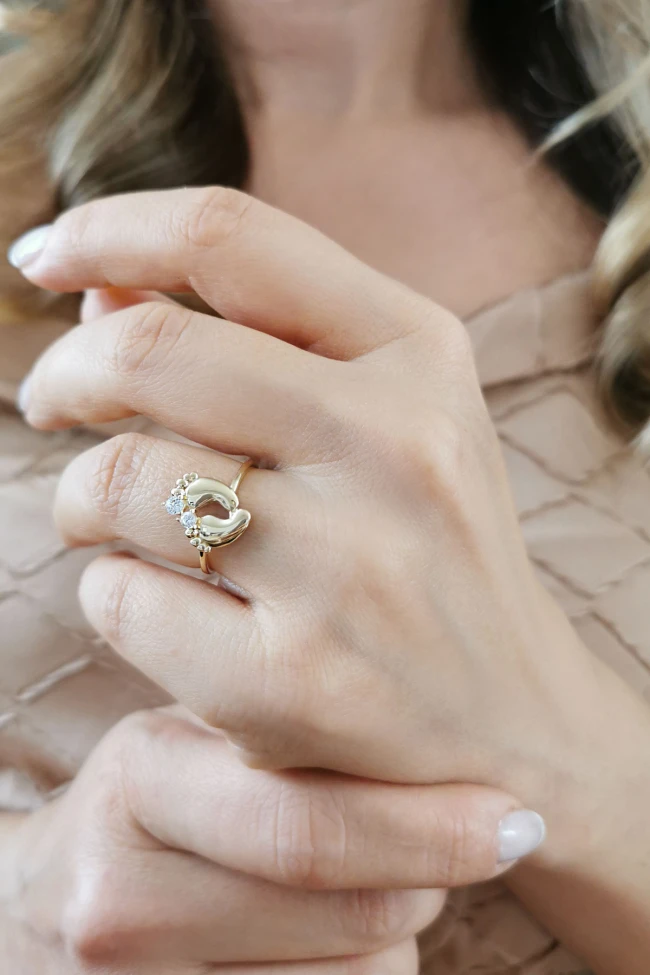 14 Ayar sarı altın, bebek ayağı tasarım günlük kullanıma uygun 1.75 gram ağırlığında anlamlı kadın yüzük.