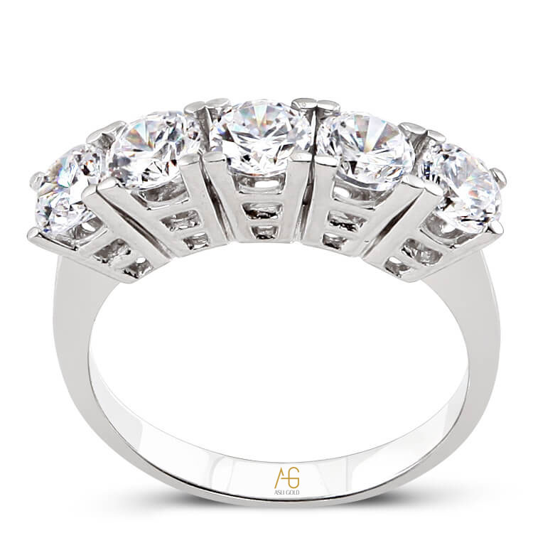 14 Ayar 4.60 gram ağırlığında zevkinize göre sarı yada beyaz altın tercihiyle satın alabileceğiniz dolgun ve büyük taşlı model zirkon taşlı 5 taş yüzük.
