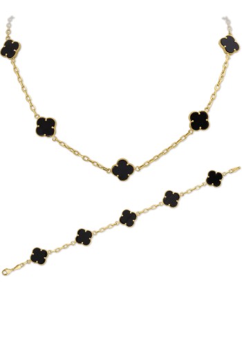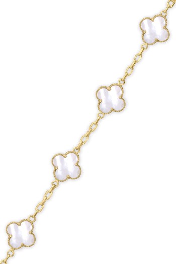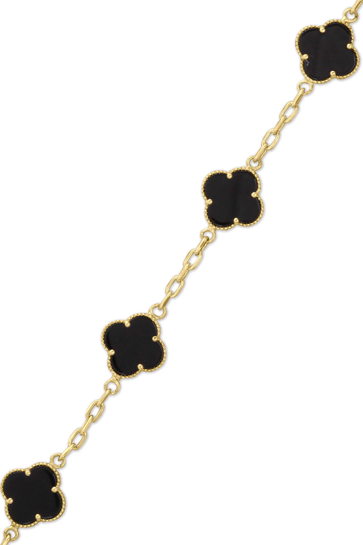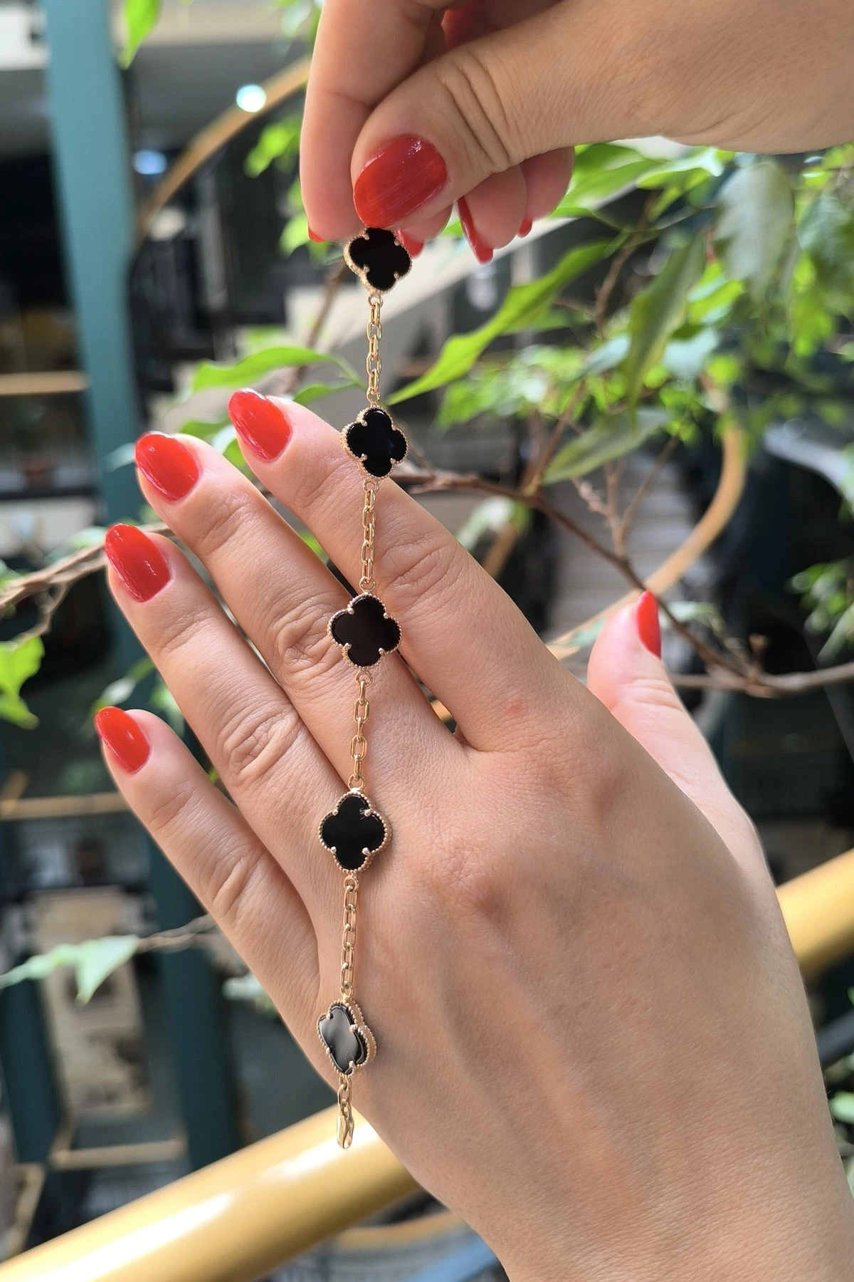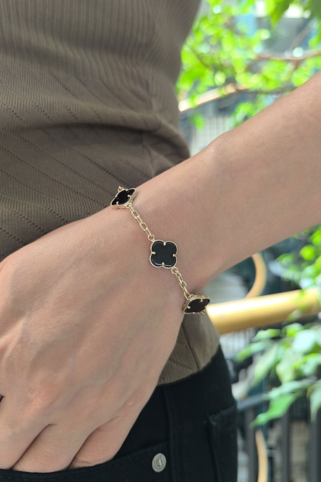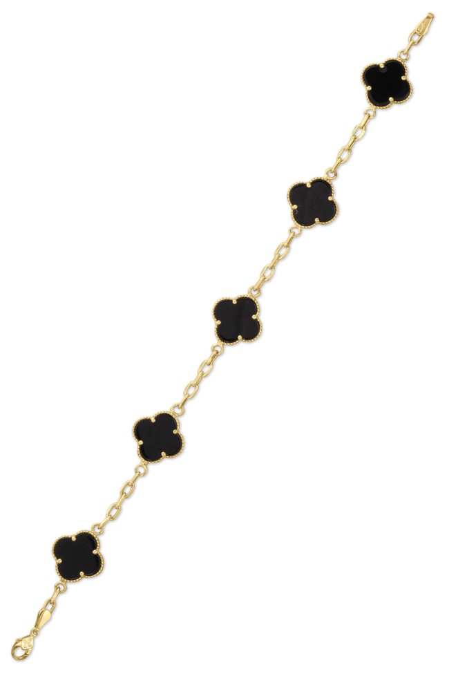 6.30 Gram Ağırlığında 18 Cm Yonca Onix Parçalardan Tasarlanmış Şık Bir Tarzı Olan 14 Ayar Altın Tasarım Bileklik.