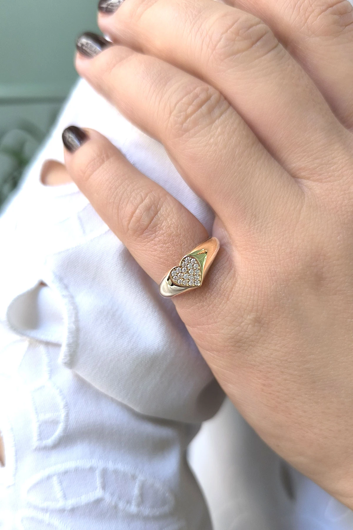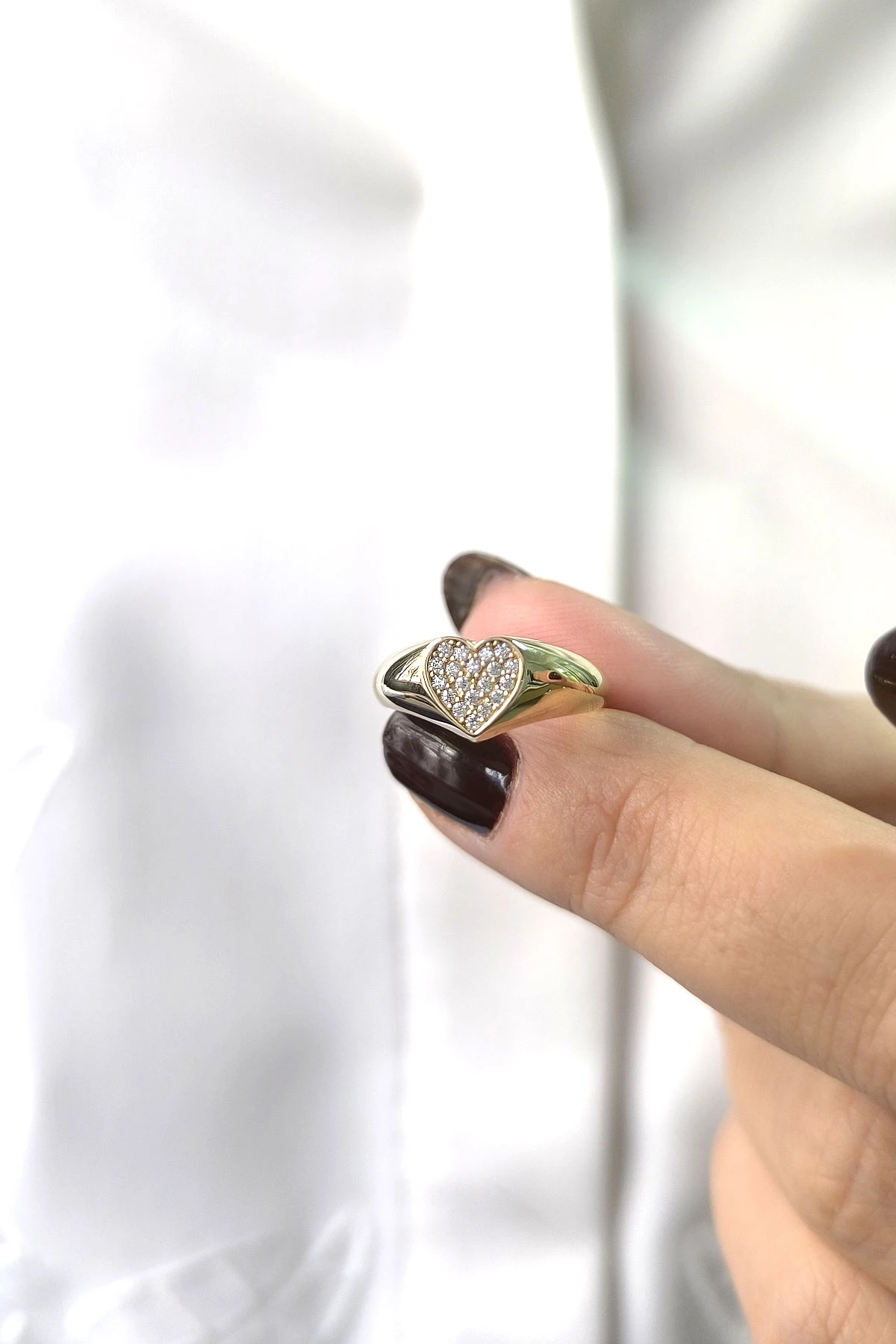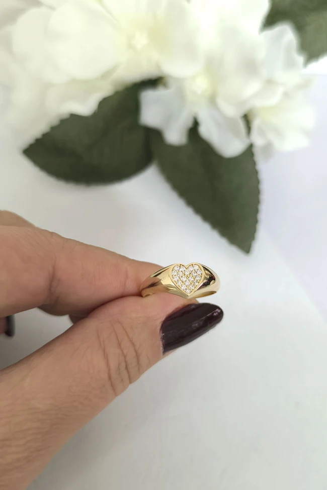 14 ayar sarı altın taşlı bombeli model spor tasarımıyla günlük kullanıma uygun  1.95 gram ağırlığında minimal kalp tasarım altın kadın yüzük.