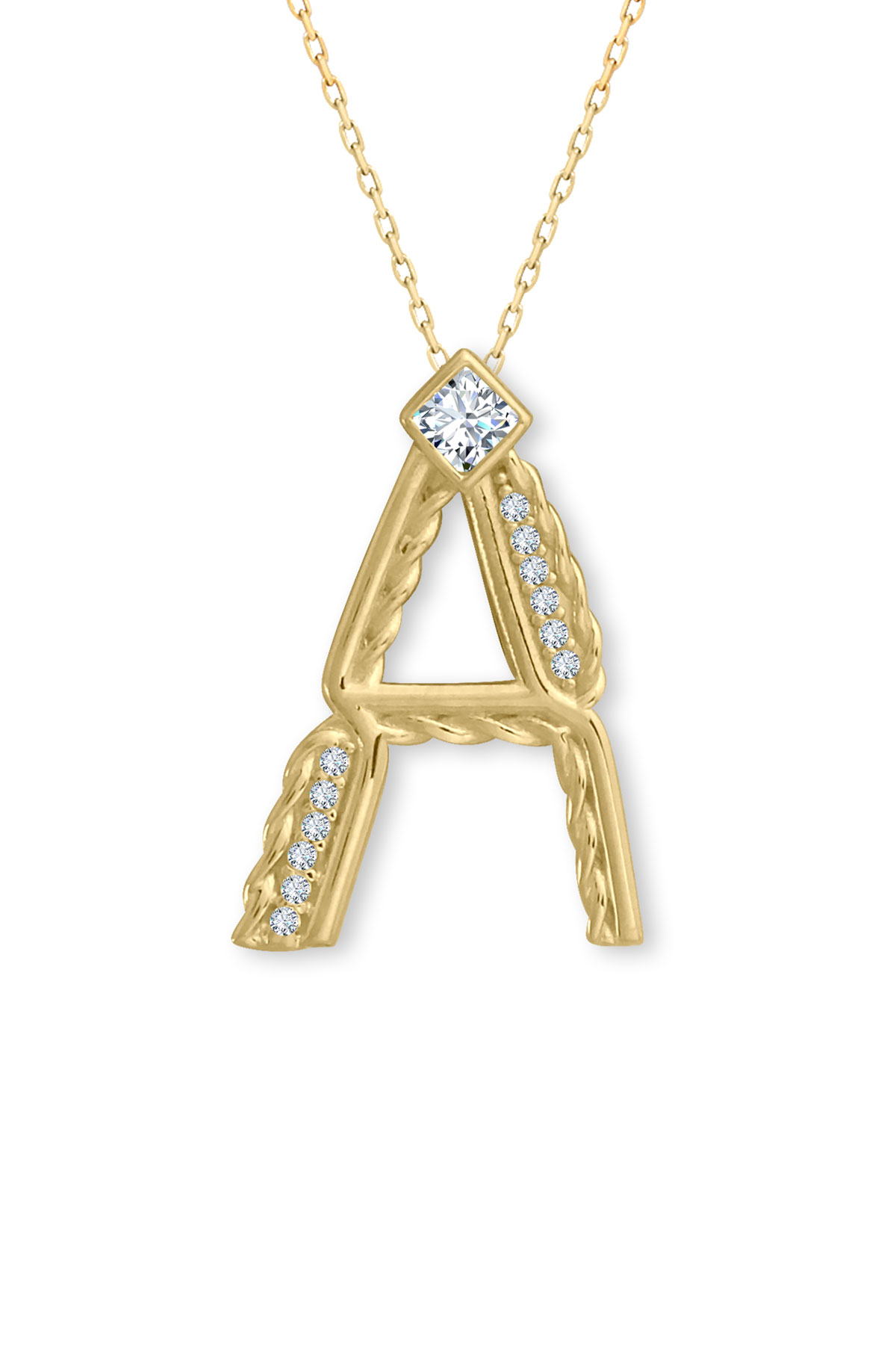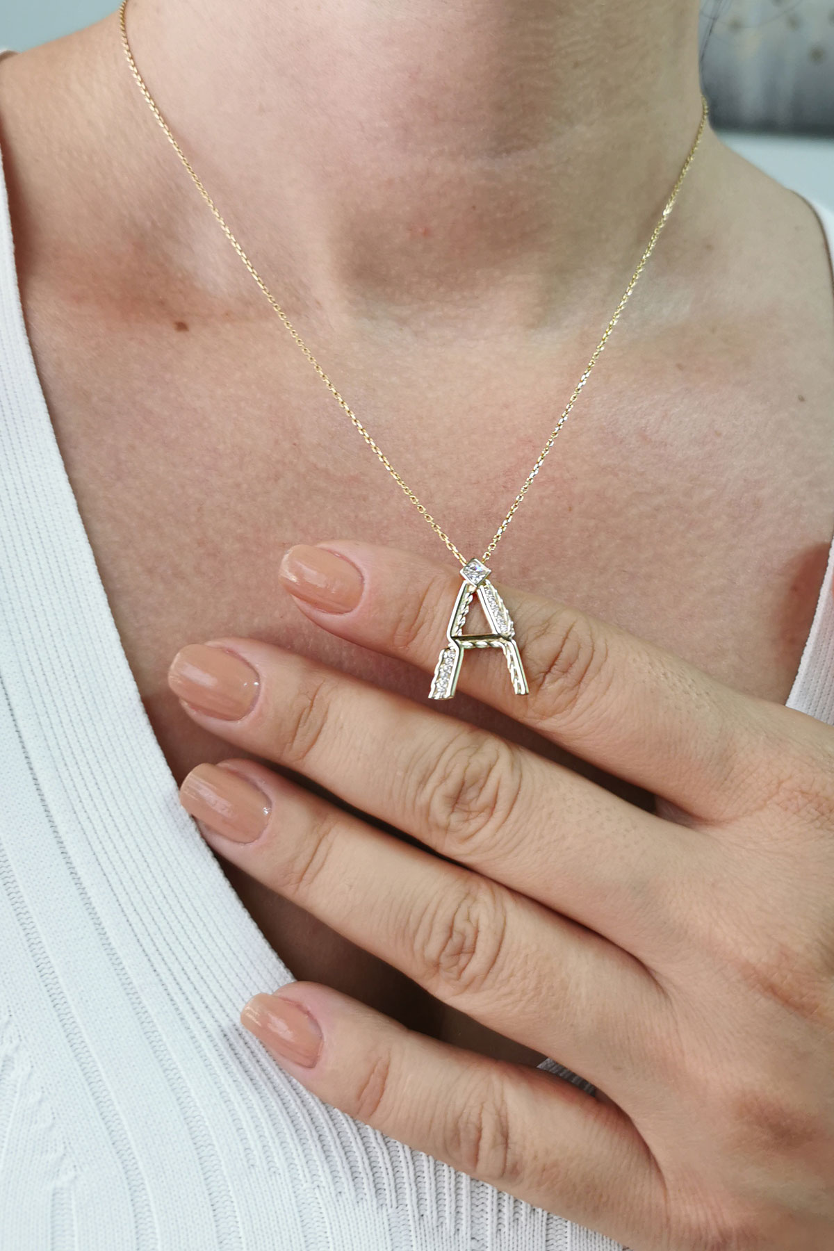 14 Ayar Altın Burgu Kenar Taşlı A Harfi Tasarım Kolye.
