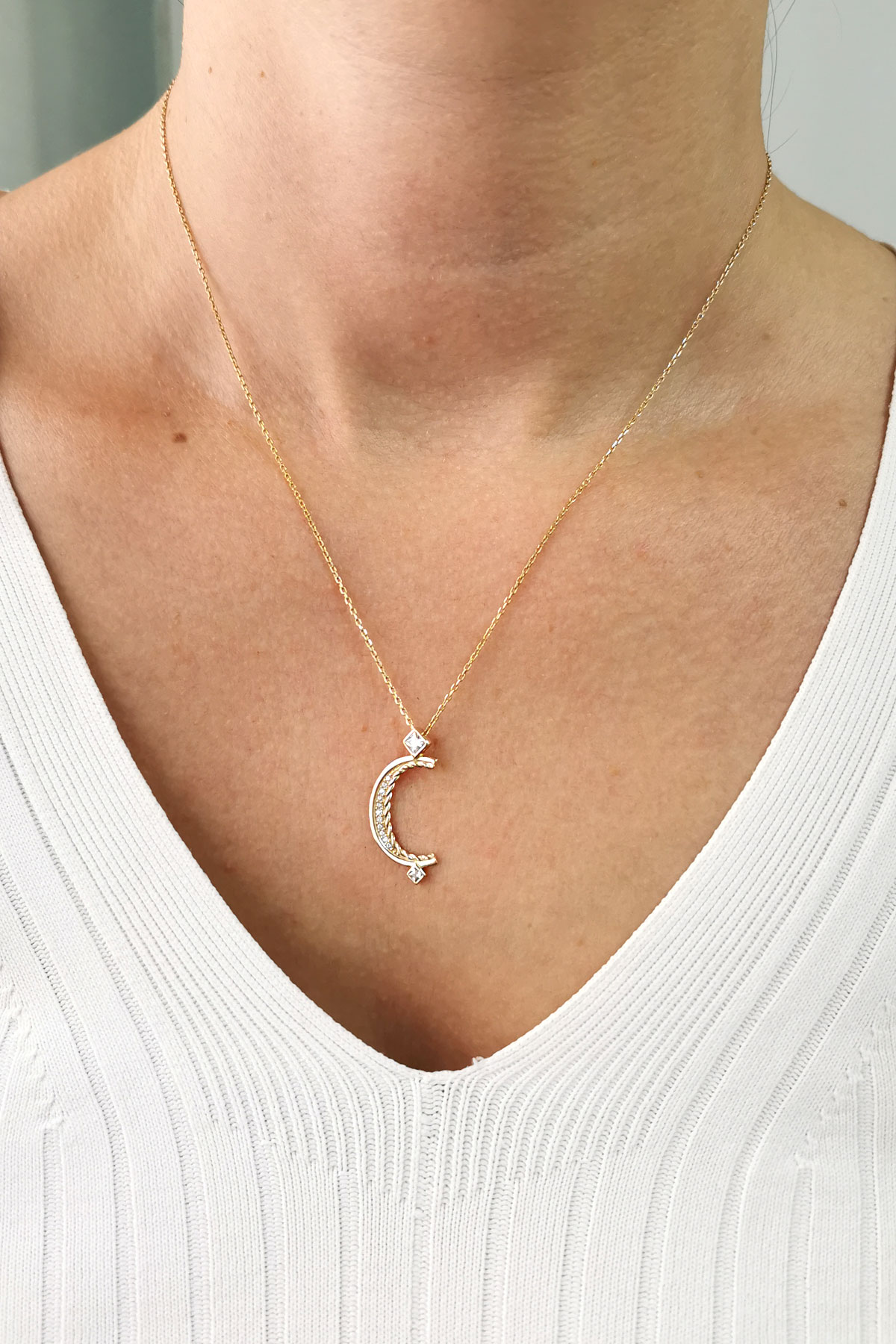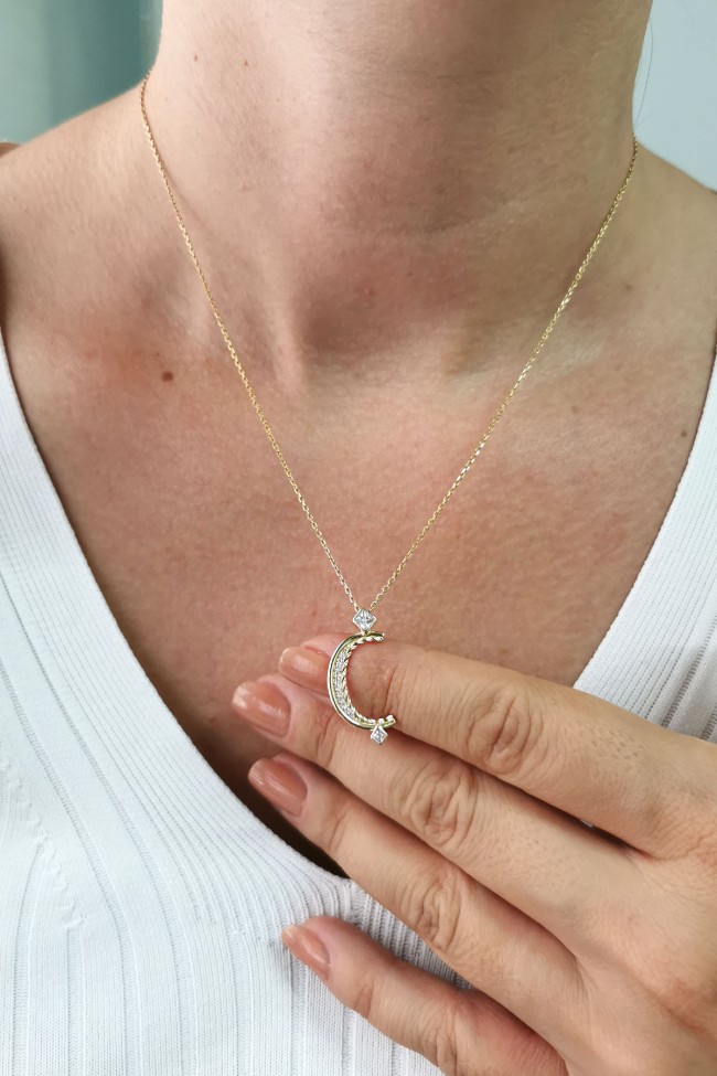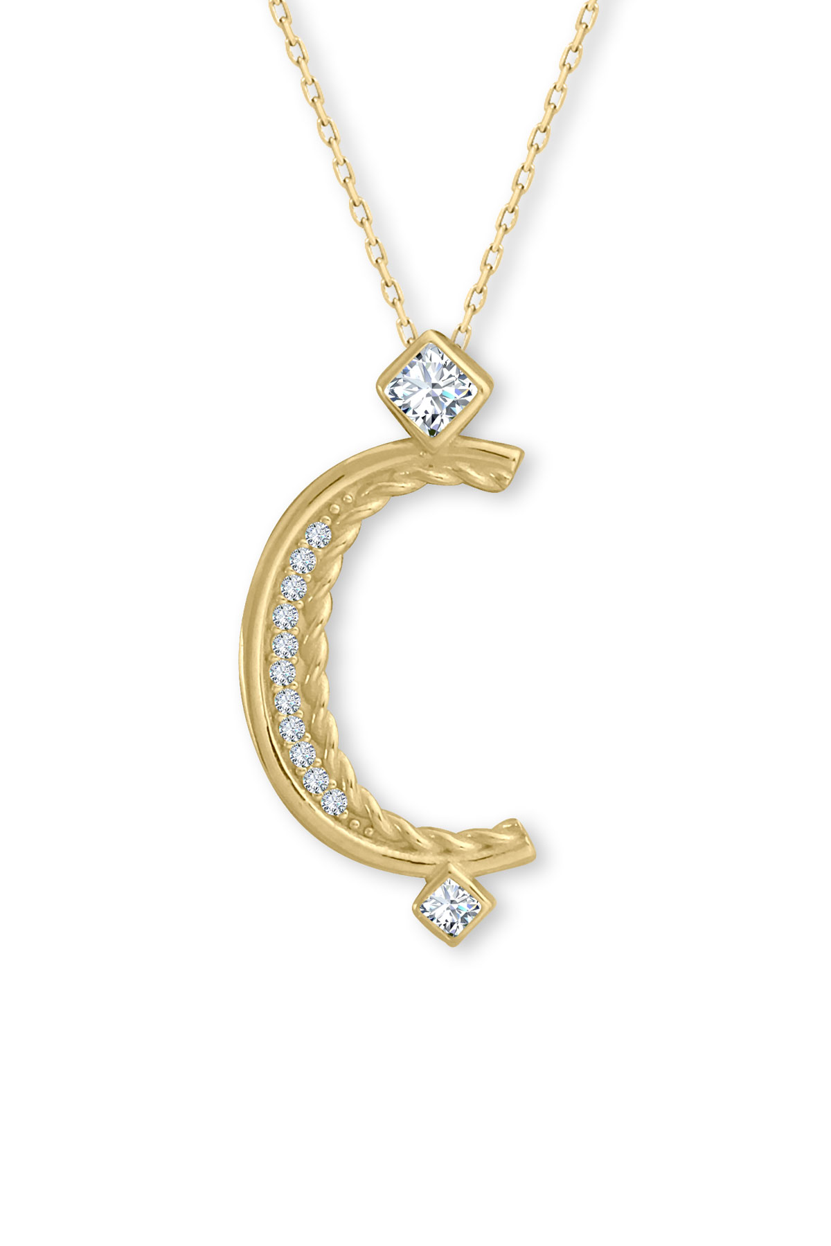 14 Ayar Altın Burgu Kenar Taşlı Ç Harfi Tasarım Kolye.