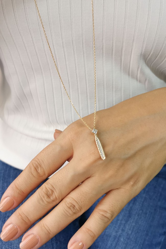 14 Ayar Altın Burgu Kenar Taşlı İ Harfi Tasarım Kolye.