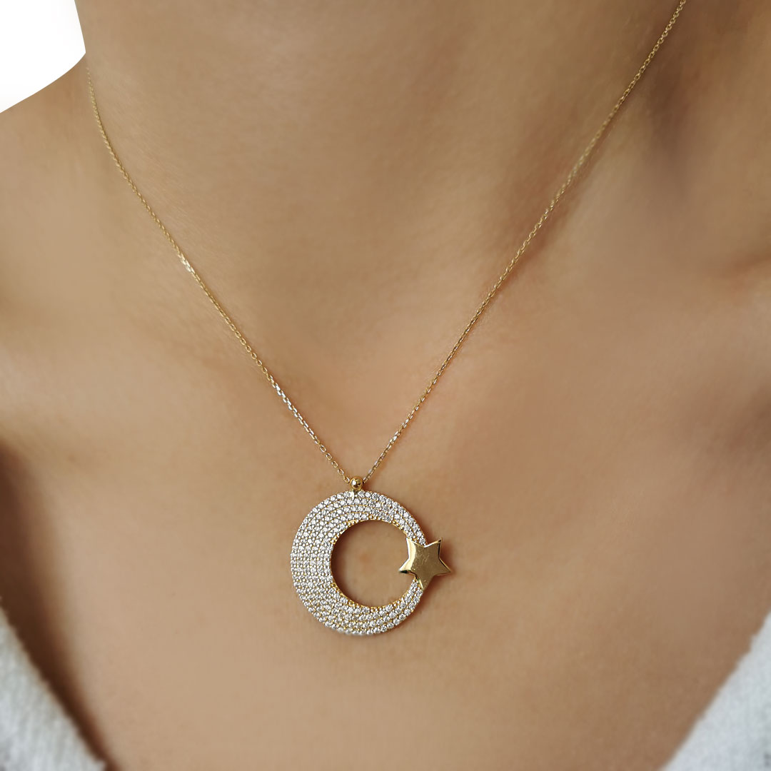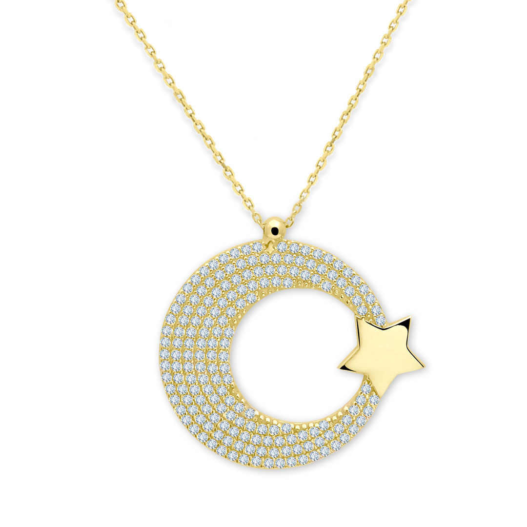 45 Cm zincirli 3.45 gr. 2.6 cm boyutunda zirkon taşlı model 14 ayar altın şık ve gurur dolu bir duruşa sahip ay yıldız kolye. *Ürünlerimiz faturalıdır güvenle satın alabilirsiniz, özel hediye kutusunda ücretsiz kargo ile gönderilecektir.