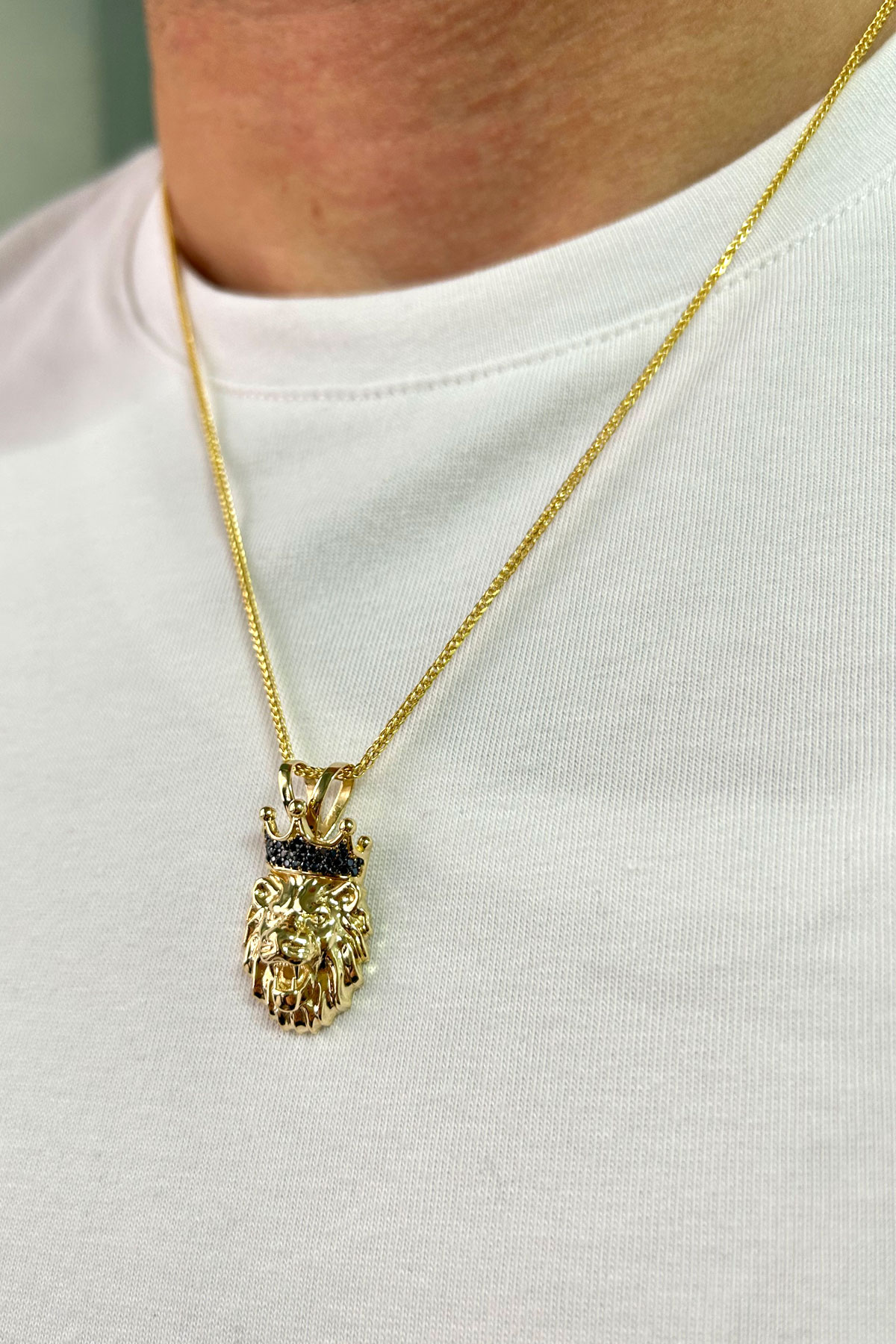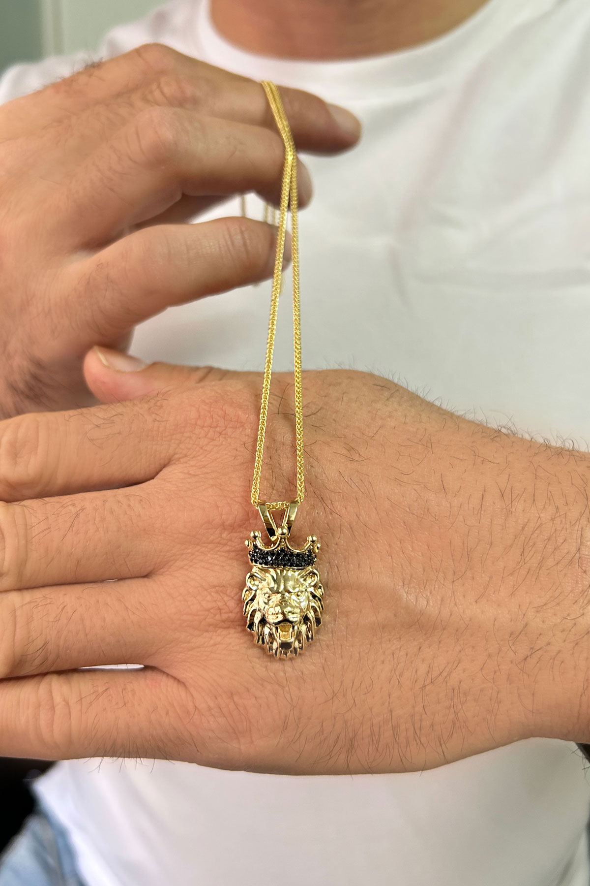 Modern Şehirli Tarz 60 Cm Boyunda Spiga Zinciri İle Oldukça Şık Bir Modele Sahip 8.00 Gr. Ağırlığında 14 Ayar Altın Aslan Erkek Kolye.