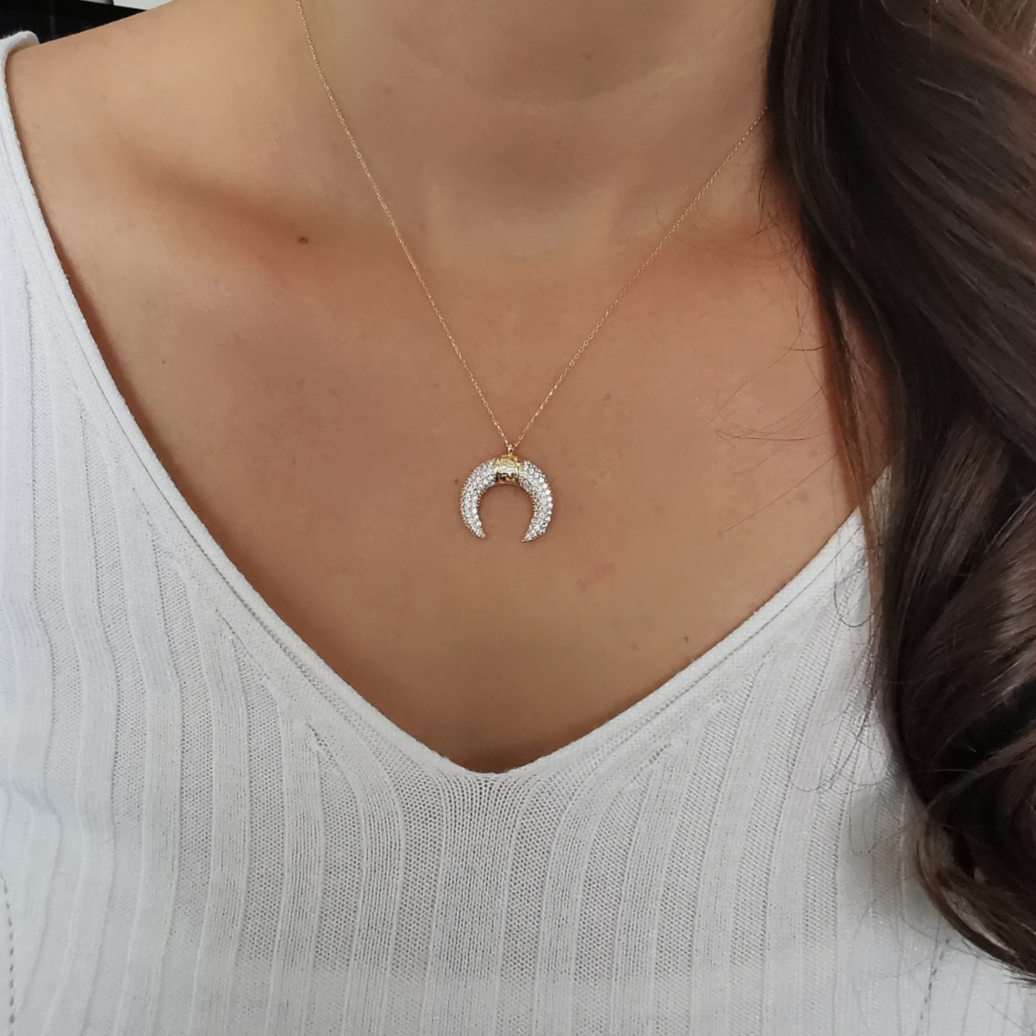 Farklı zincir boyu seçenekleri ile satın alabileceğiniz şık taşlı ve modern duruşu ile ışıl ışıl yarım ay kolye. Dilerseniz farklı tarzdaki kolyelerinizle bir arada kombine olarak kullabileceğiniz harika bir model. *Ürünlerimiz faturalıdır güvenle satın alabilirsiniz, özel hediye kutusunda ücretsiz kargo ile gönderilecektir.