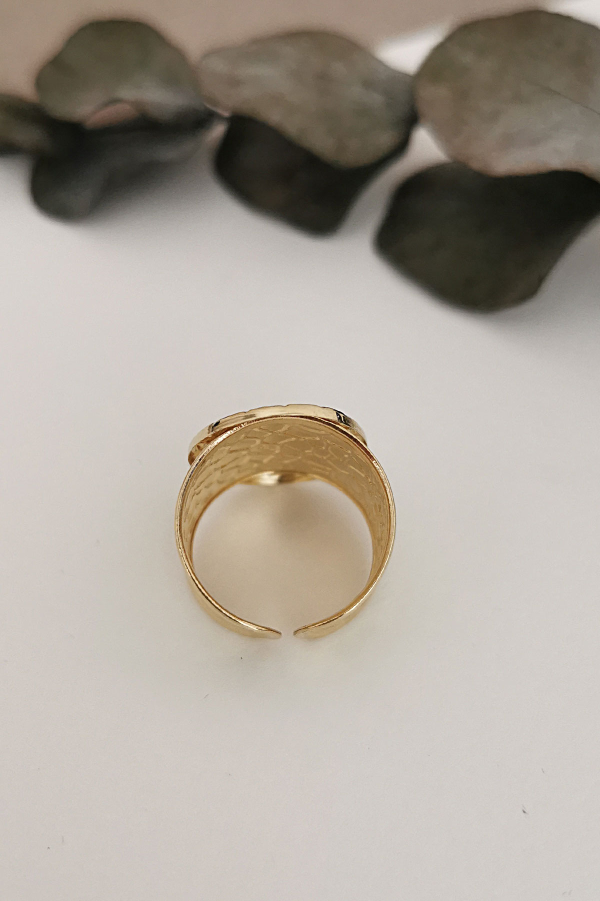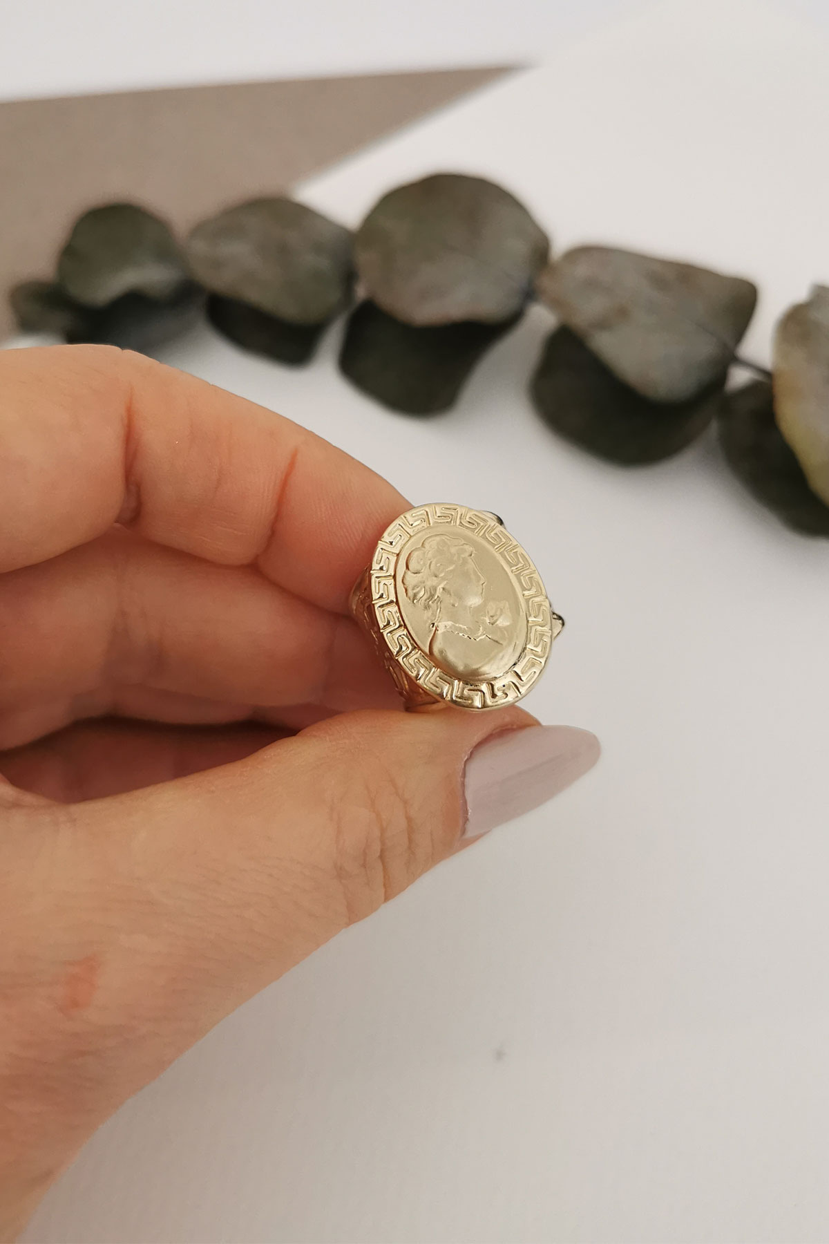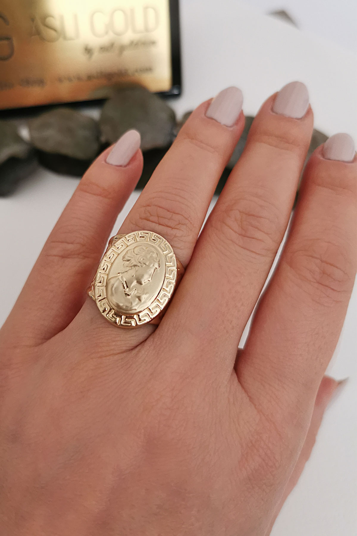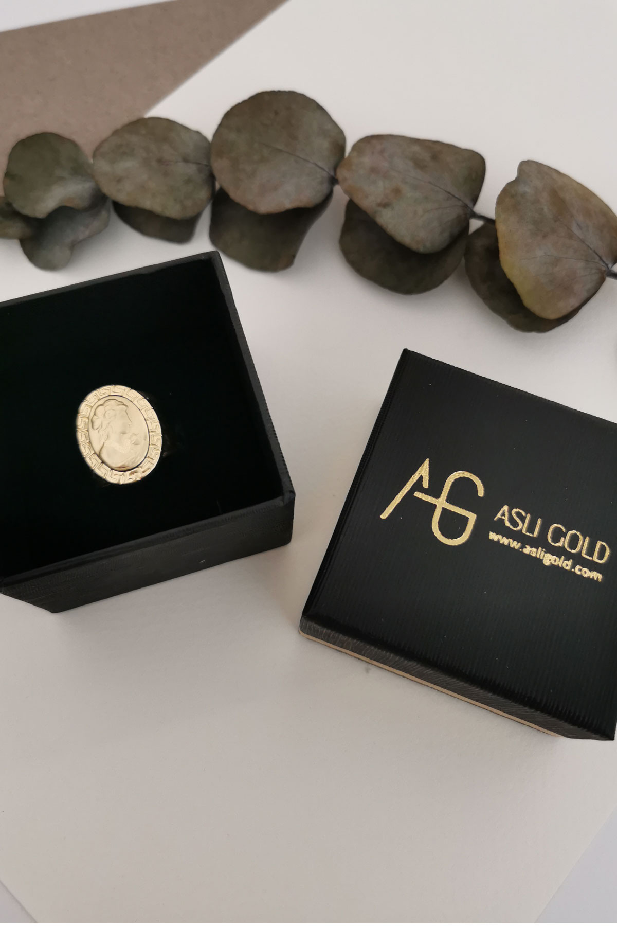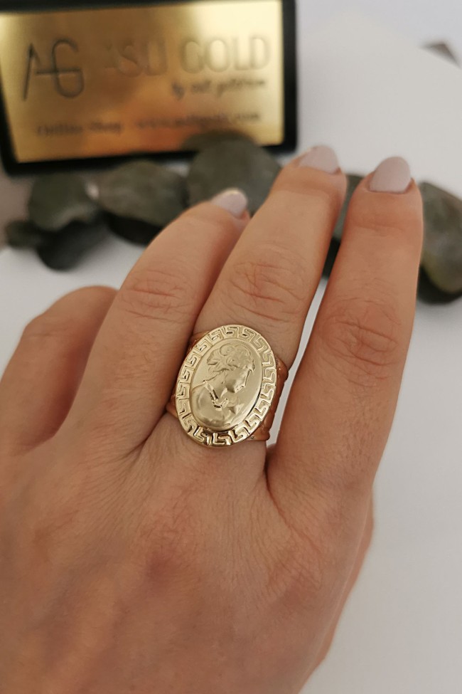 14 Ayar altın taşsız özel tasarım Camei Yüzük. İsterseniz orta parmak isterseniz yüzük parmağınızda kullanabileceğiniz kendinden ayarlı bu harika tasarım ile tarzınızı ikiye katlayın!