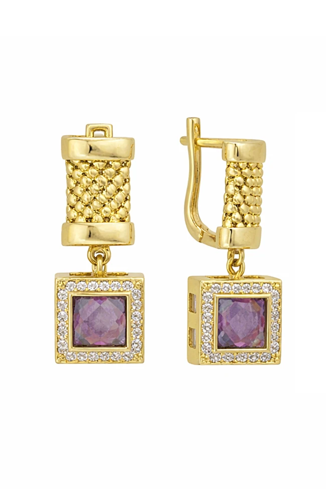 Spor Ve Şık Bir Tasarıma Sahip 7.80 Gram Ağırlığında 2.5 Cm Boyunda Ametist Mor Taş Detaylı 14 Ayar Altın Cesika Küpe. Günlük kullanıma uygundur, tüm giyim tarzınıza muhteşem uyum sağlar.