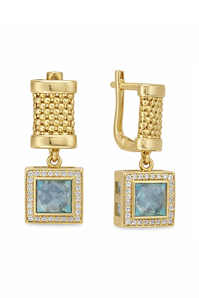 Spor Ve Şık Bir Tasarıma Sahip 7.80 Gram Ağırlığında 2.5 Cm Boyunda Auqmarin Mavi Taş Detaylı 14 Ayar Altın Cesika Küpe. Günlük kullanıma uygundur, tüm giyim tarzınıza muhteşem uyum sağlar.