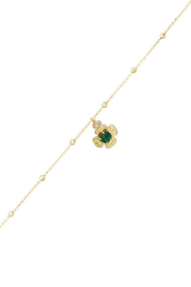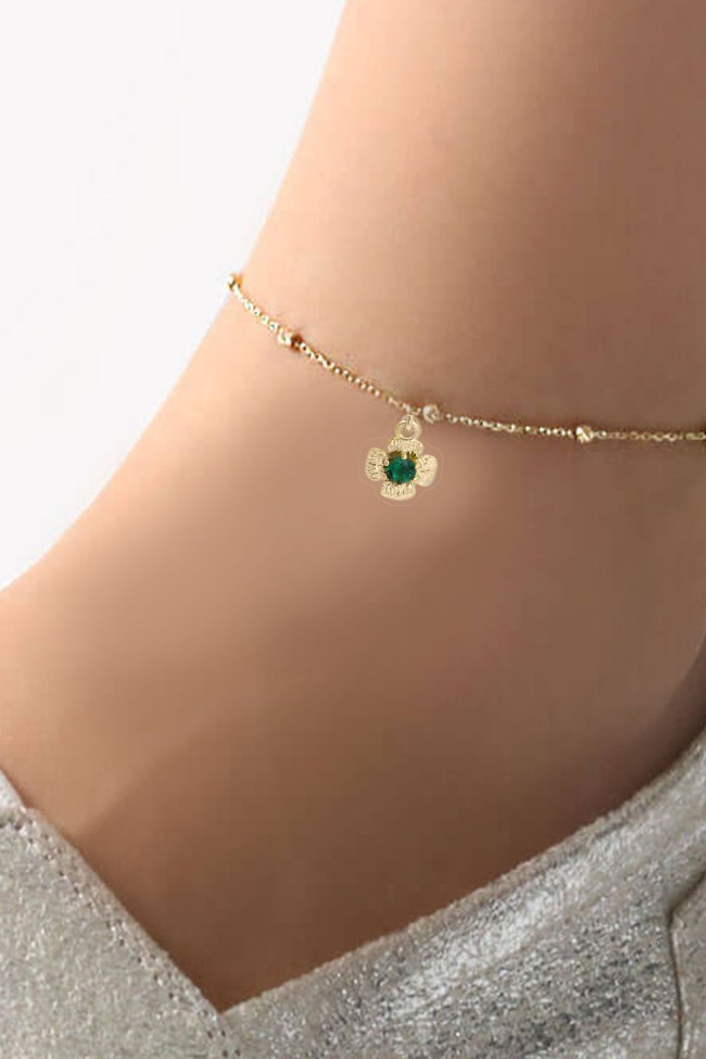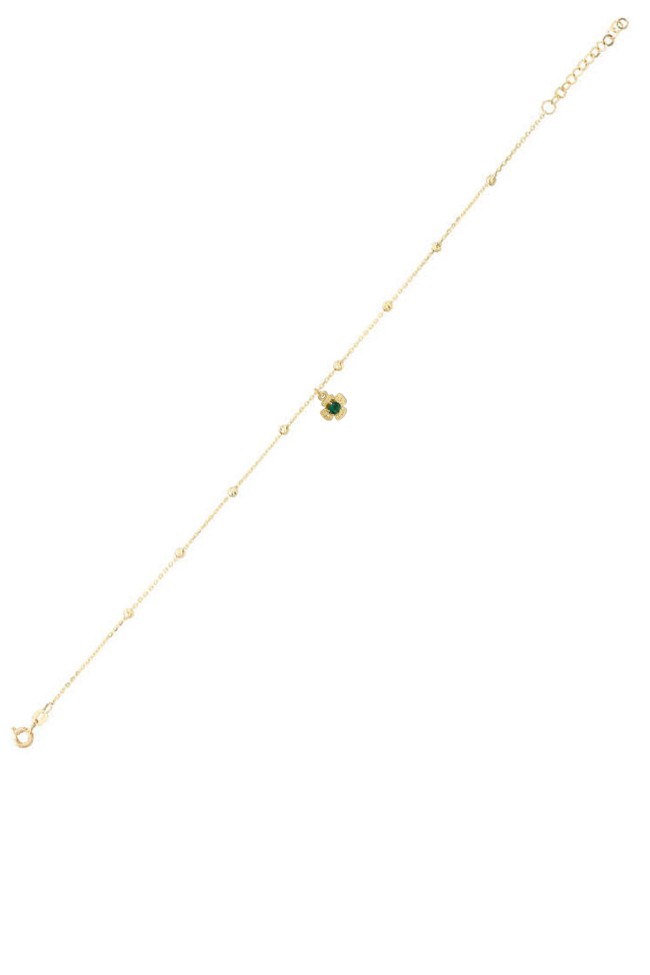 20 Cm + 5 Cm Uzatma Zincirli 1.65 gr. yeşil zirkon taşlı model 14 ayar altın halhal.