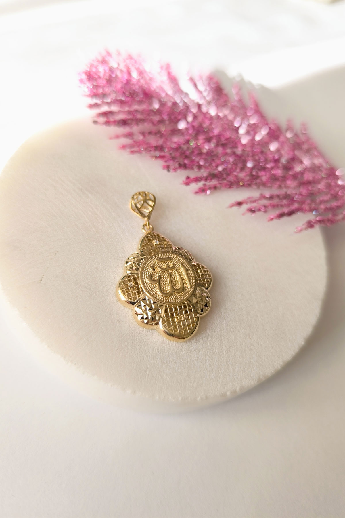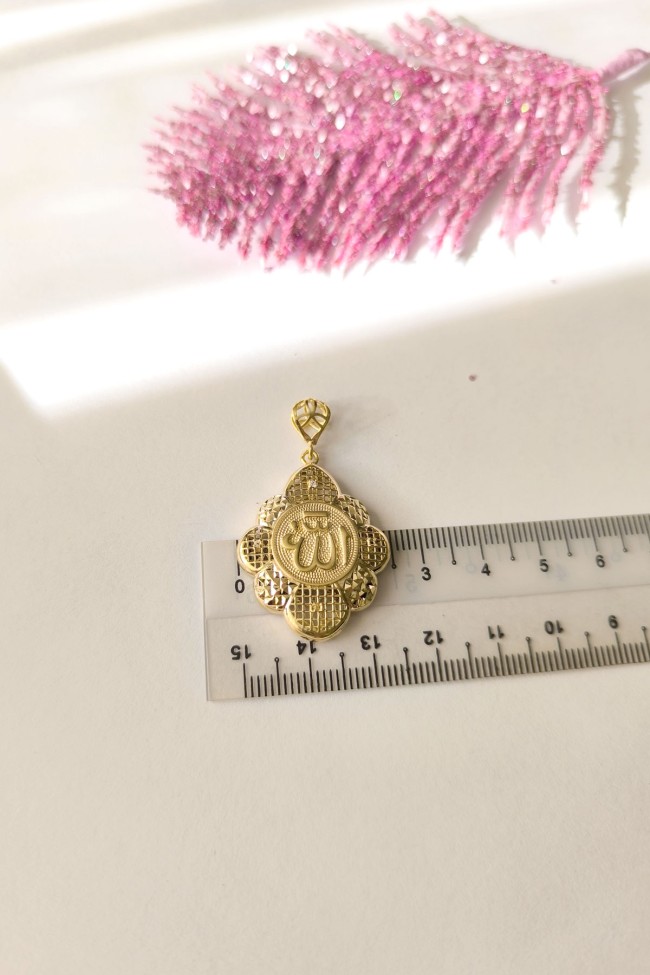 Dua detaylı tasarımı ile günlük olarak da kullanabileceğiniz, özel günlerinde sevdiklerinize şık bir hediye seçeneği olacak 4 gr. ağırlığında 4 cm 14 ayar altın oval kolye ucu.