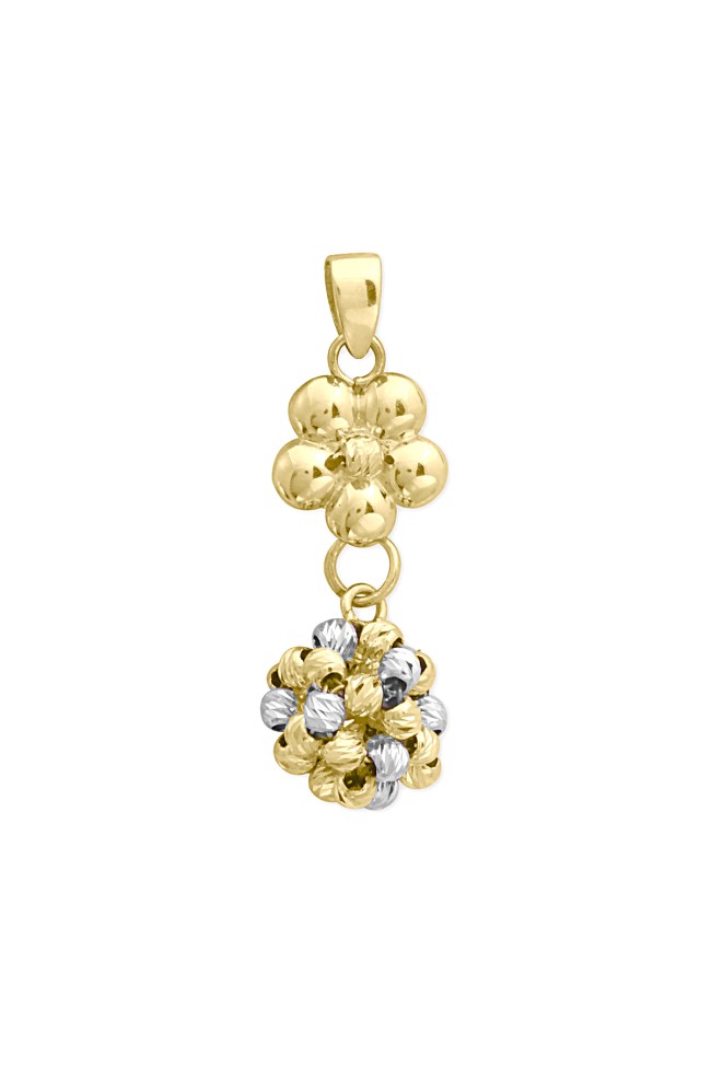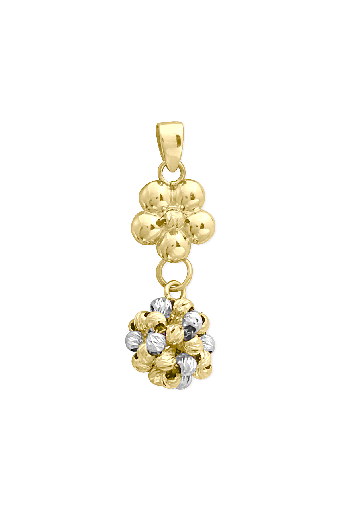 Çiçek detaylı 14 ayar sarı -beyaz altın toplu tasarımıyla günlük kullanıma uygun 2.30 gram ağırlığında 3.5 Cm ışıltılı dorika kadın kolye ucu.