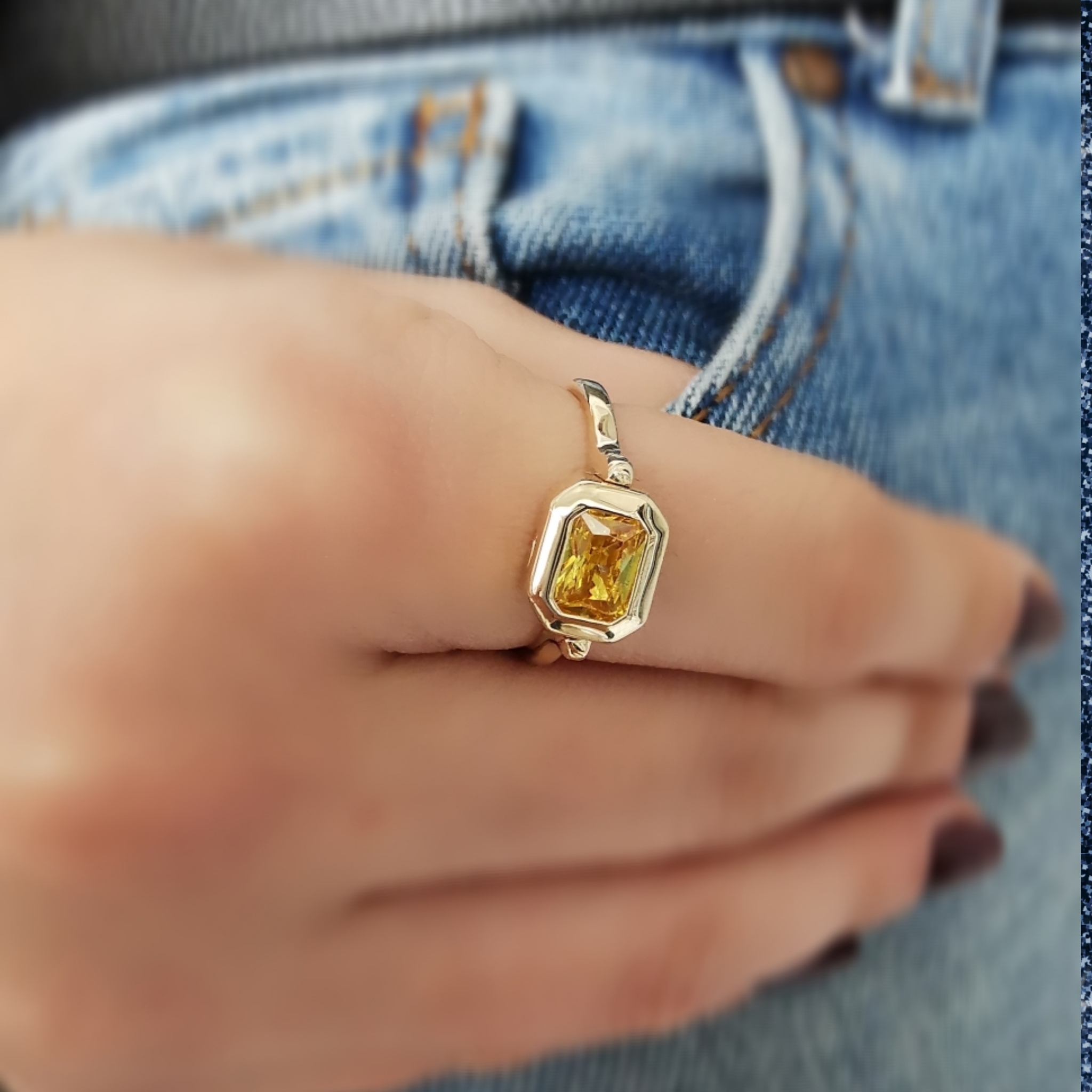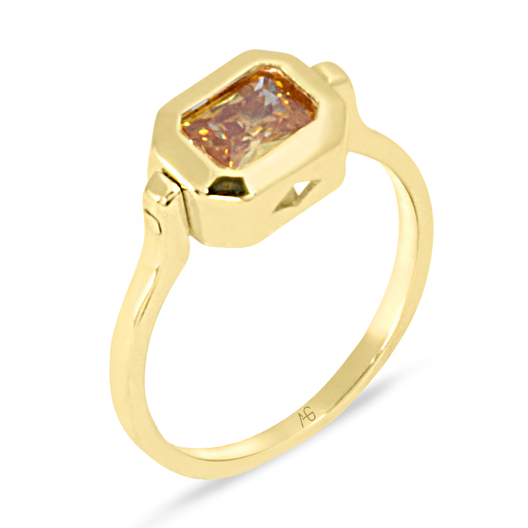 Taş Yuvası Döner 14 Ayar Sarı Altın Citrine Baget Taşlı Spor Yüzük.