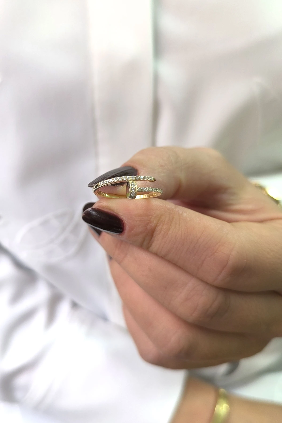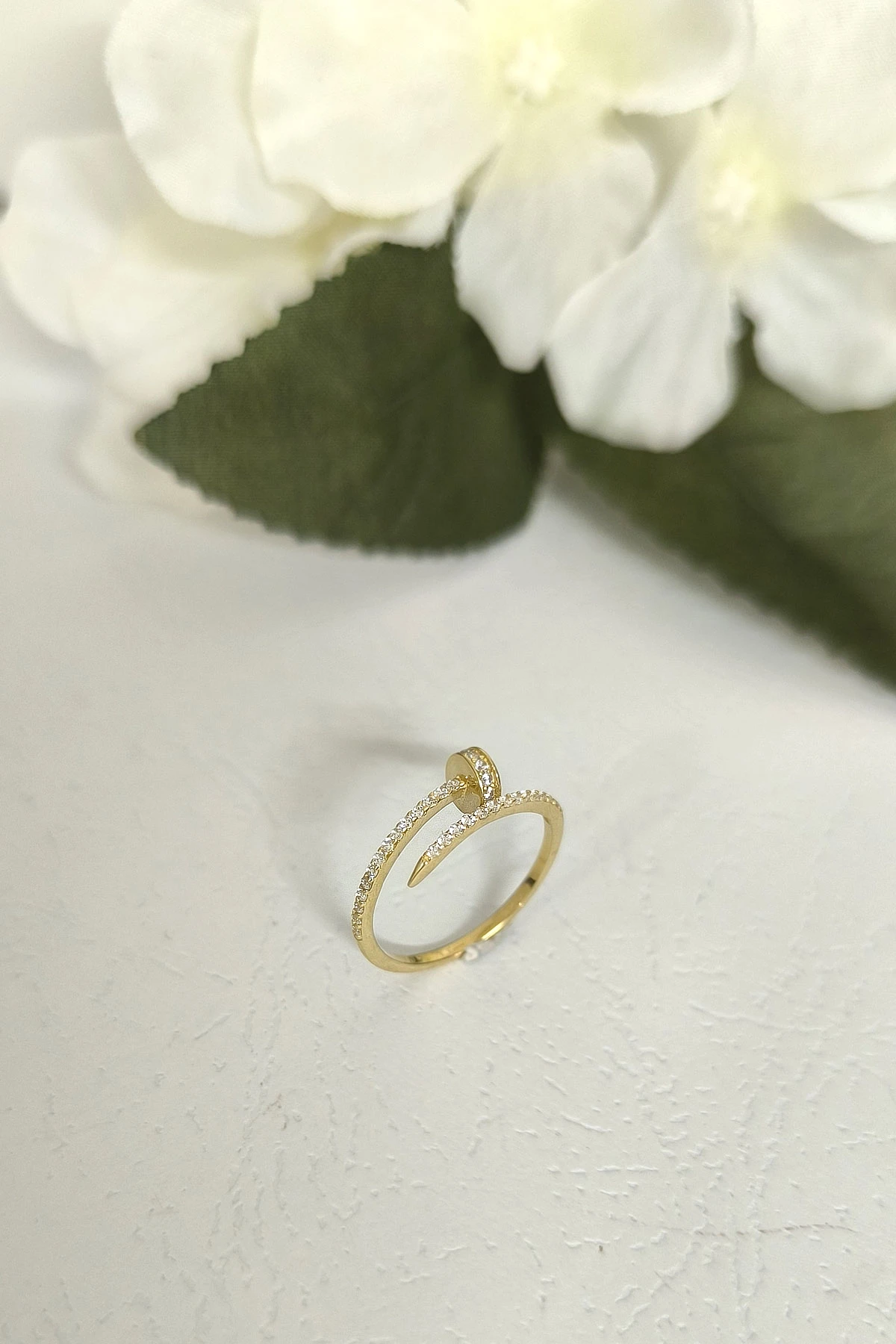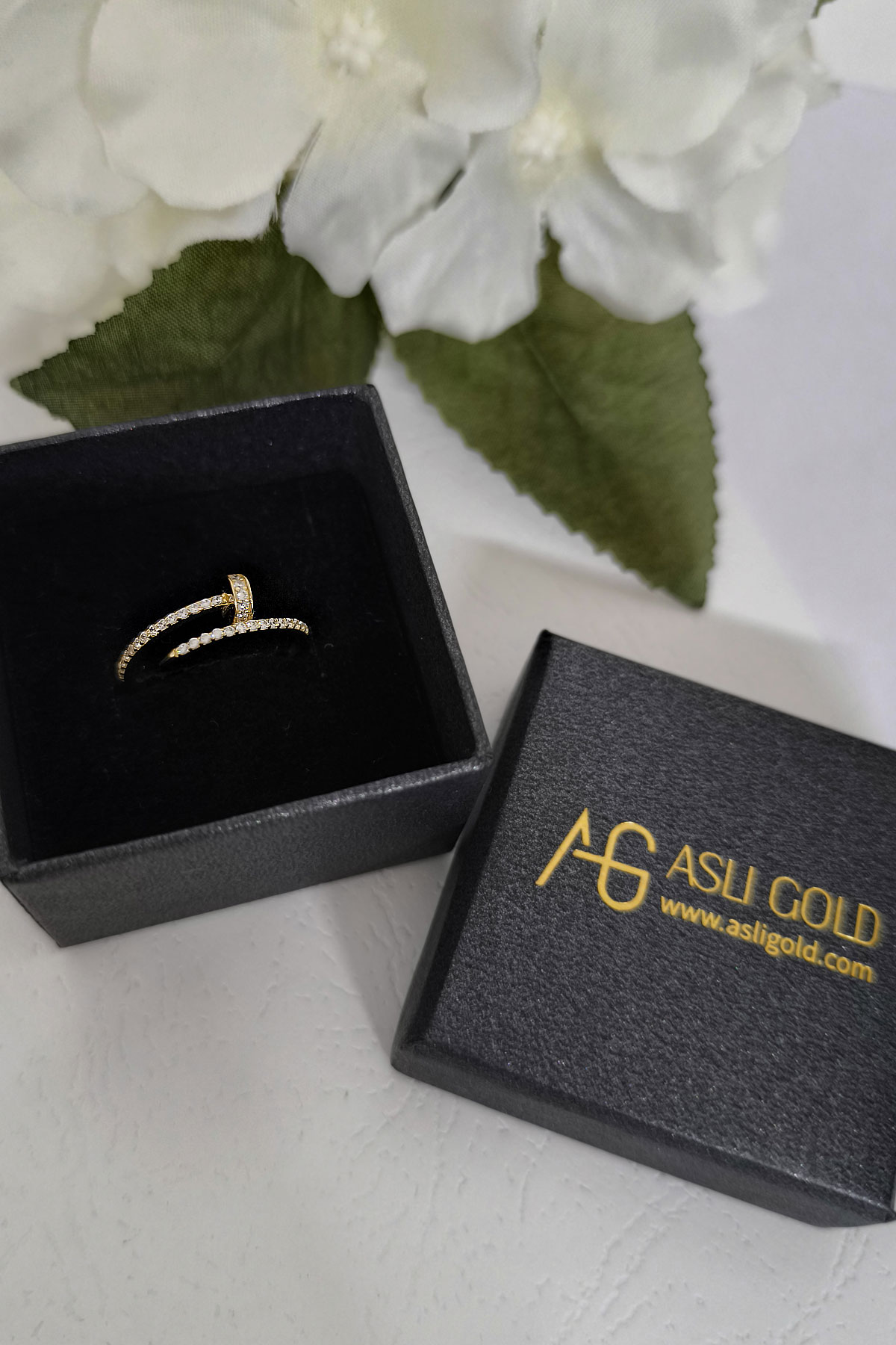 14 ayar sarı altın minimal spor tasarımıyla günlük kullanıma uygun 1.60 gram ağırlığında altın çivi yüzük.