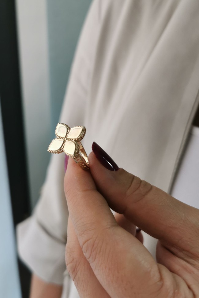 3.20 Gram Ağırlığında Yaprak Model Modern Tasarımıyla Göz Dolduran Şık Model 14 Ayar Altın Roberto Coin Yüzük.