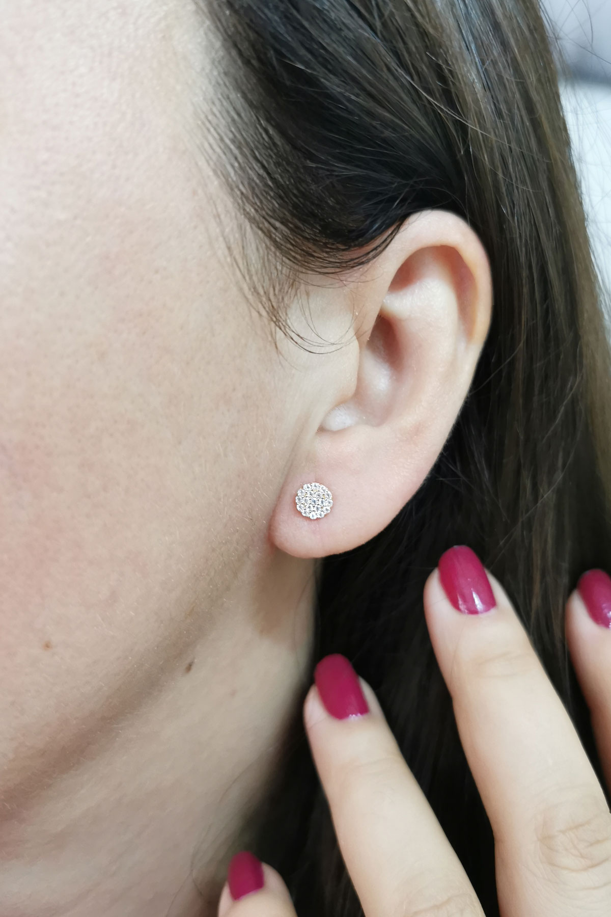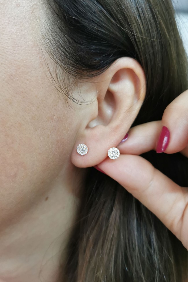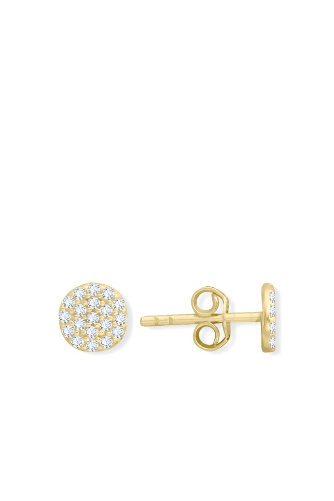 0.5 Cm boyunda zirkon taşlı minimal ışıl ışıl 14 ayar 1 gr ağırlığında altın daire model vidalı küpe.