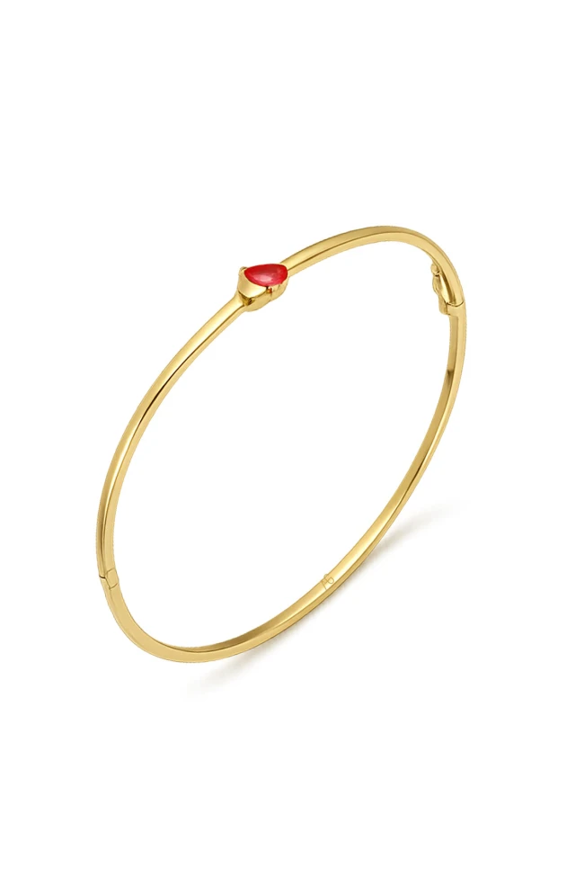 İlk bakışta sade, ama yakından incelendiğinde büyüleyici bir detay… Bu damla kırmızı taşlı ince ve zarif 14 ayar altın bilezik, şıklığın en saf halini temsil ediyor. Günlük hayatta minimal bir dokunuşla fark yaratmak isteyenler için tasarlanan bu özel parça, zarafeti abartıya kaçmadan yansıtıyor.