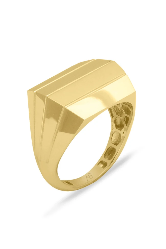 3.00 Gram Ağırlığında 14 Ayar Taşsız Füzyon Model Altın  Dikdörtgen Form Modern Yüzük. Tüm giyim ve yüzük kombinlerinize ışıltısıyla uyum sağlayacak şık, modern ve trend tasarımıyla yıllarca severek kullanacaksınız.