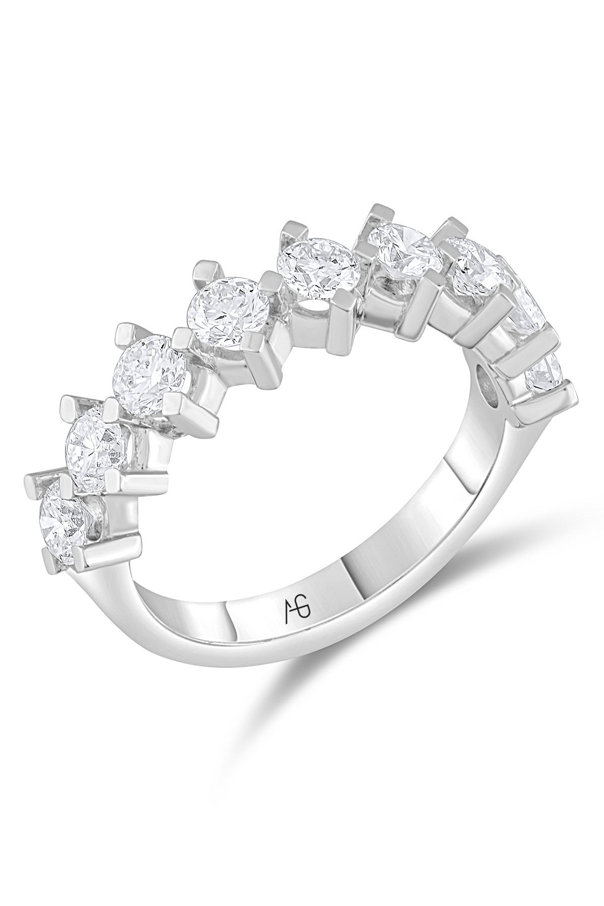 F/VS 1.40 Ct. taşlı 14 ayar beyaz altın gösterişli dokuz taşlı pırlanta yüzük. Şahane duruşuyla parmaklarınızda ahenk yakalayacağınız anlara şahit olun.