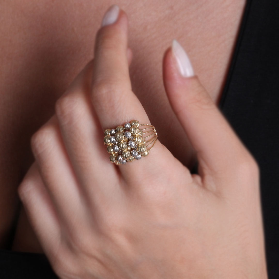 Kalemli teller ile dizayn edilen dorika top detaylı model 14 ayar ışıl ışıl italyan tasarım 5.50 gram ağırlığında altın Katia yüzük.