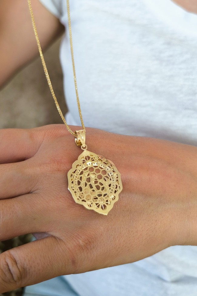 Dua detaylı tasarımı ile günlük olarak da kullanabileceğiniz, özel günlerinde sevdiklerinize şık bir hediye seçeneği olacak  6.30 gr. ağırlığında 14 ayar altın kolye
