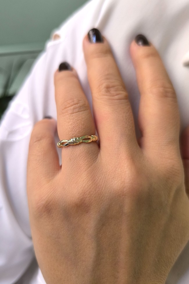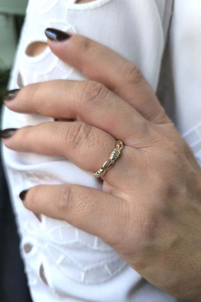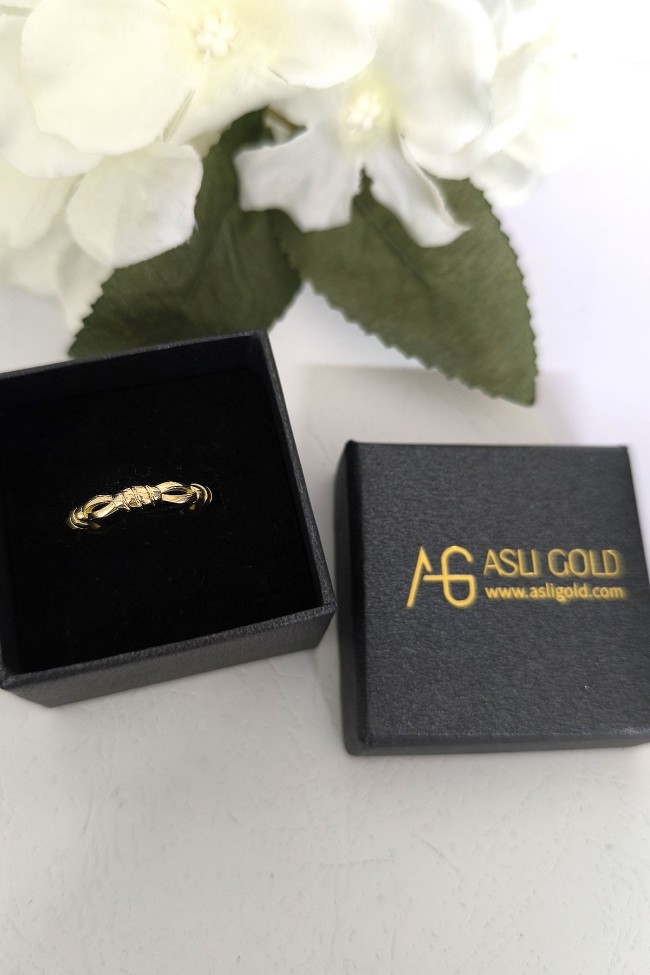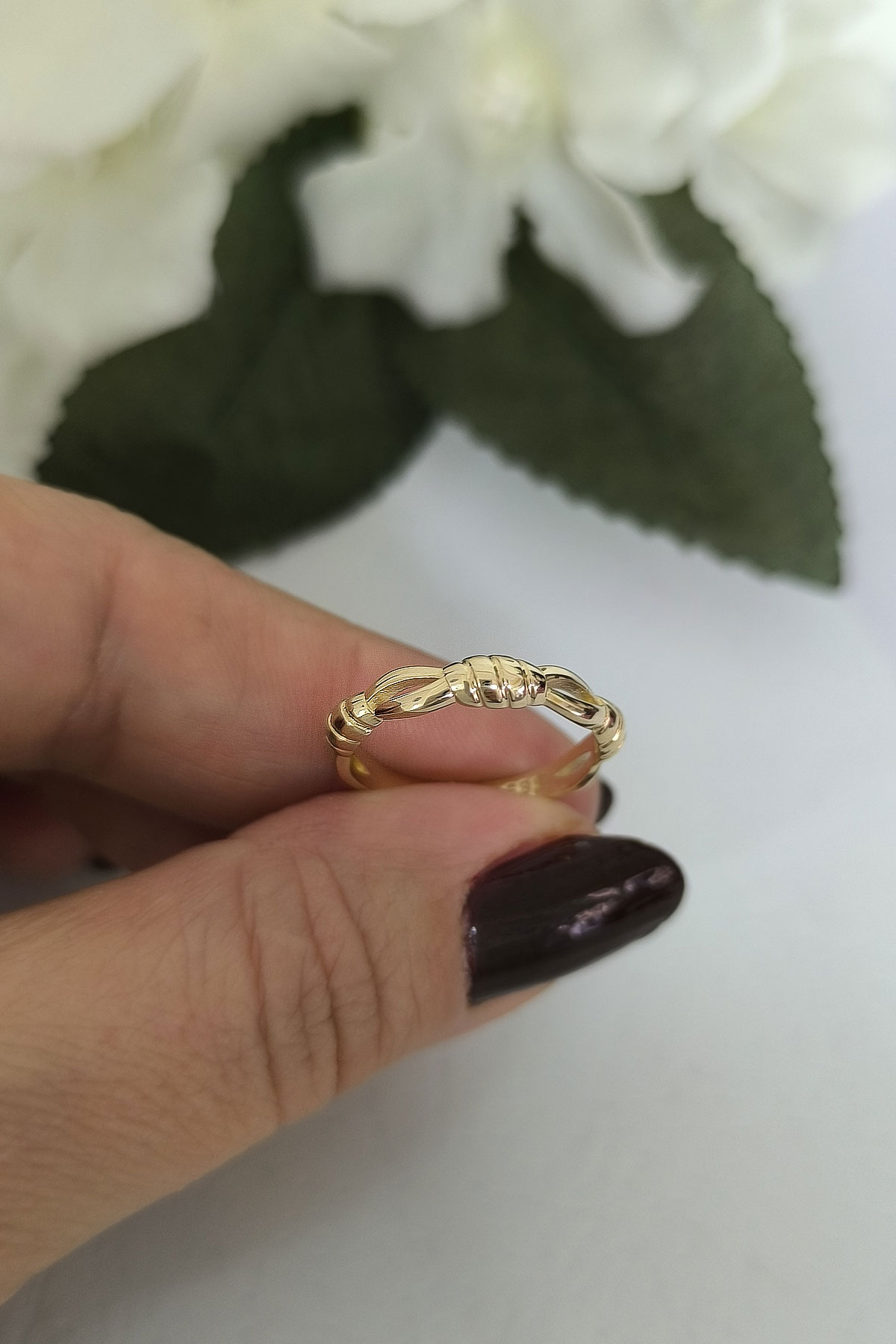 14 ayar sarı altın günlük kullanıma uygun 2.14 gram ağırlığında altın spor taşsız tasarım düğüm model yüzük.