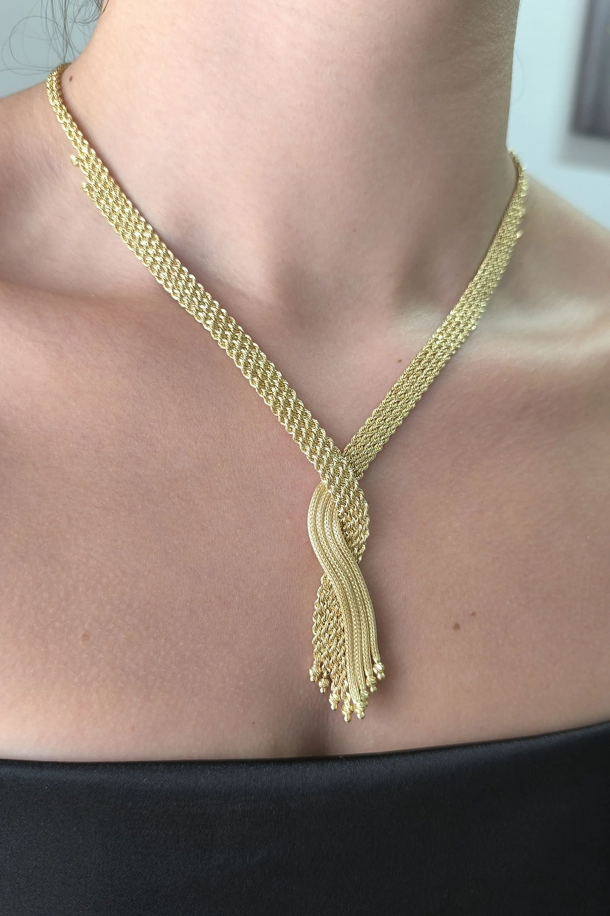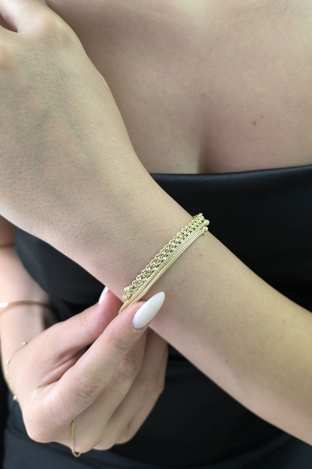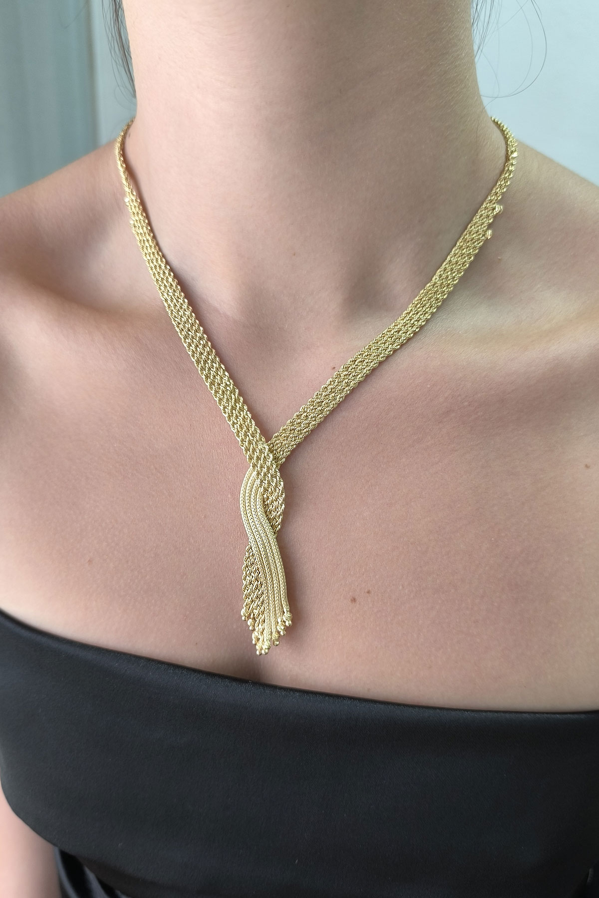 14 Ayar hafif, modern ve havalı tasarım günlük kullanıma uygun taşsız ışıl ışıl döngü model oldukça iddialı bir model 22.10 gram ağırlığında altın trabzon işi görünümlü kadın ikili gerdanlık seti.