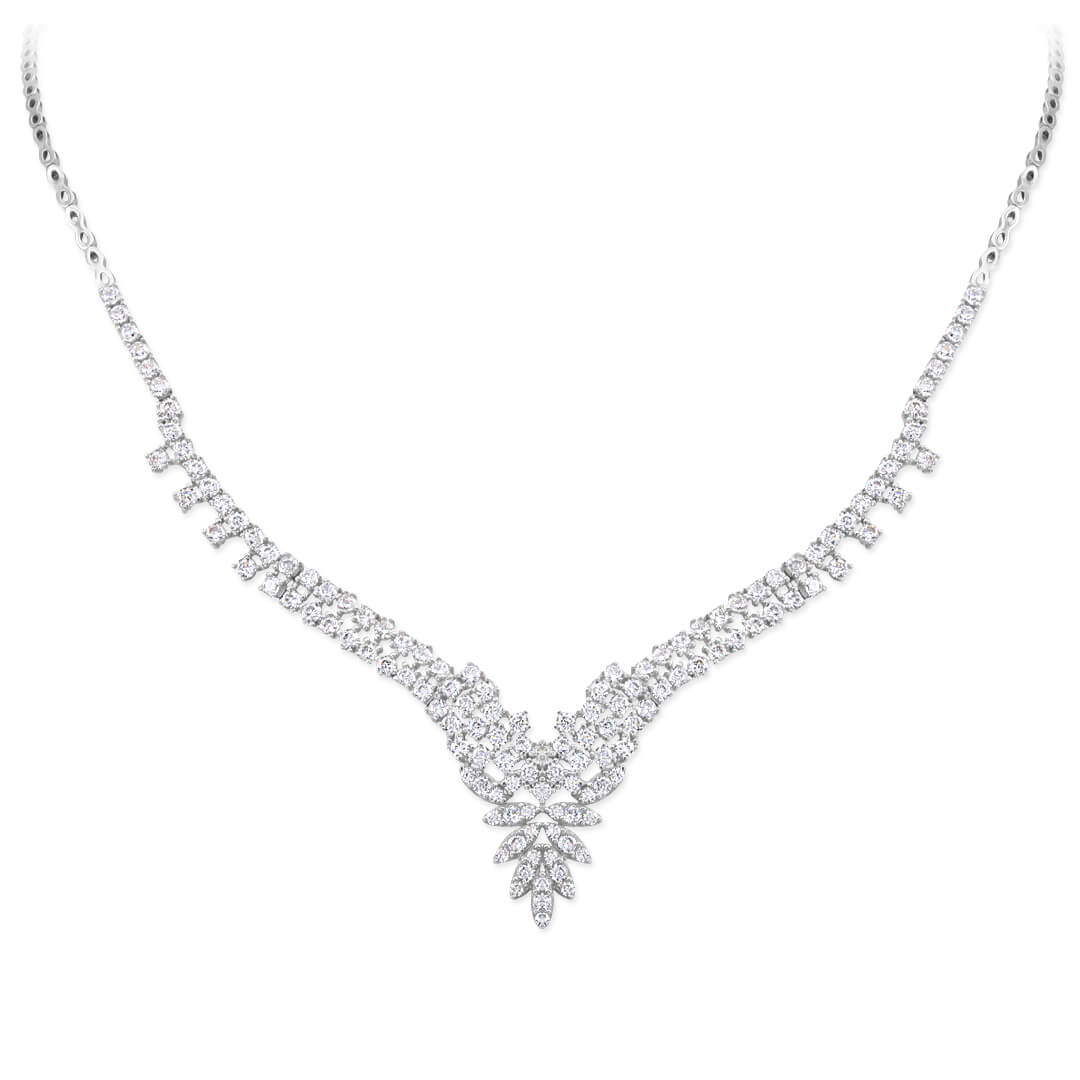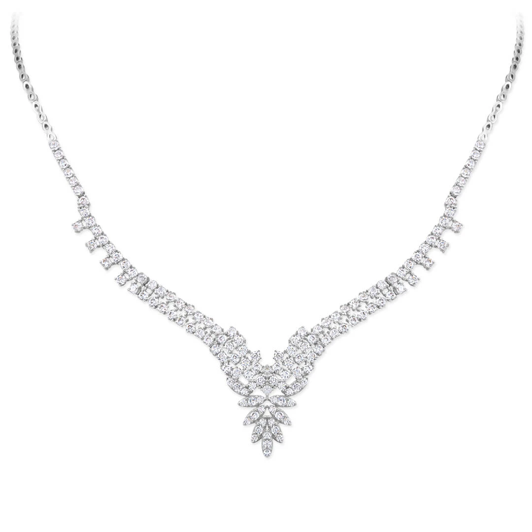 14 Ayar Işıl Işıl Zarif Bir Modele Sahip Beyaz Altın 18.90 Gram Ağırlığında Işık Seli Zirkon Taşlı Gösterişli Gerdanlık.