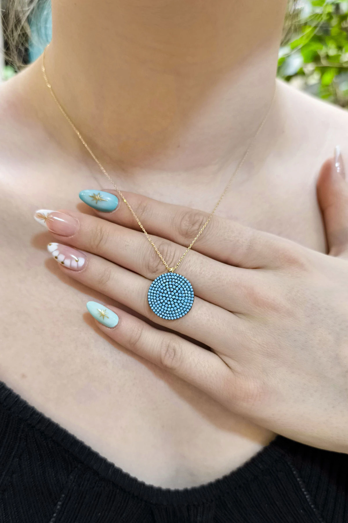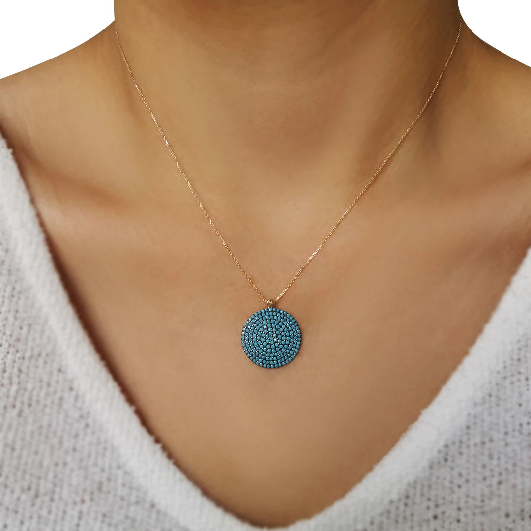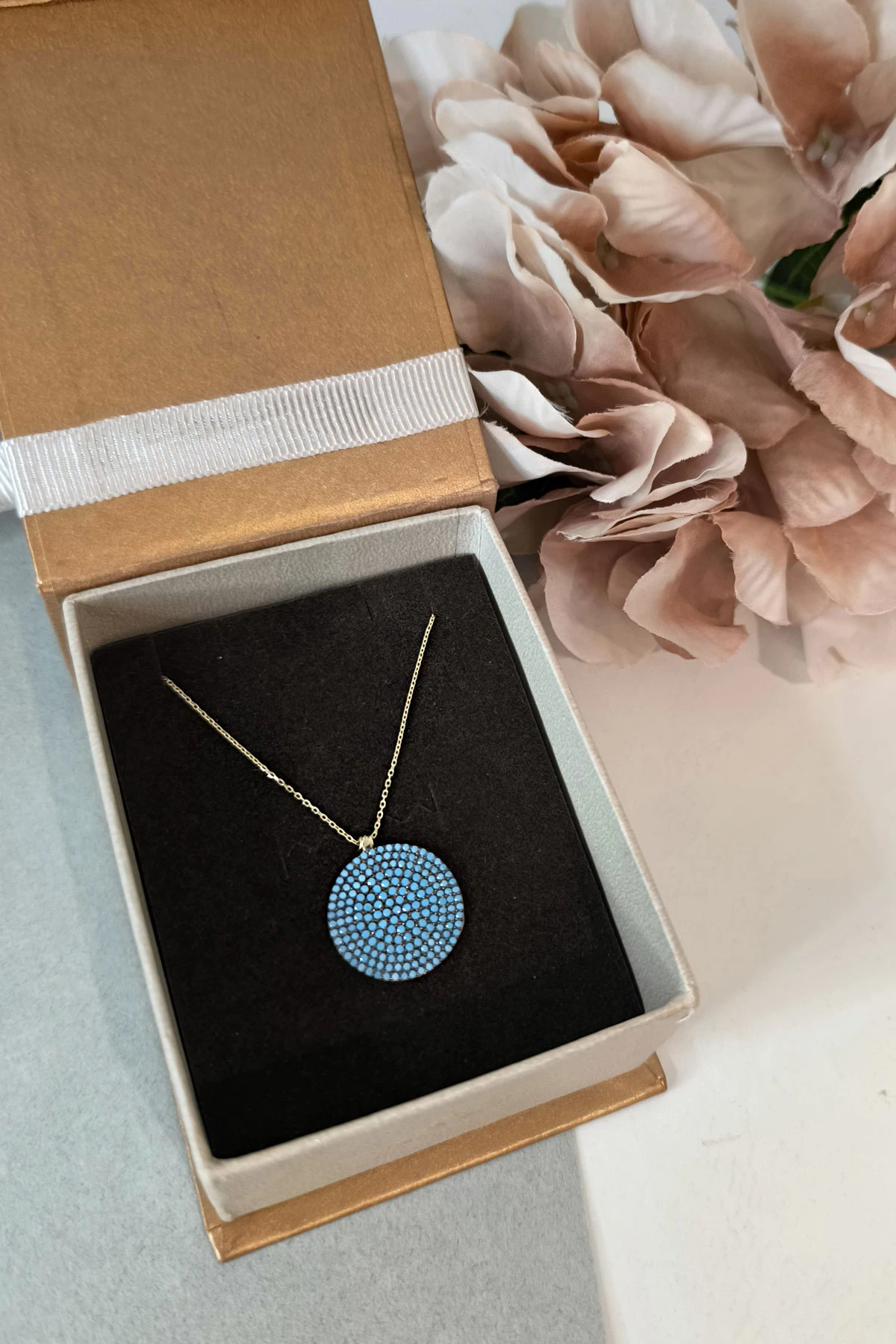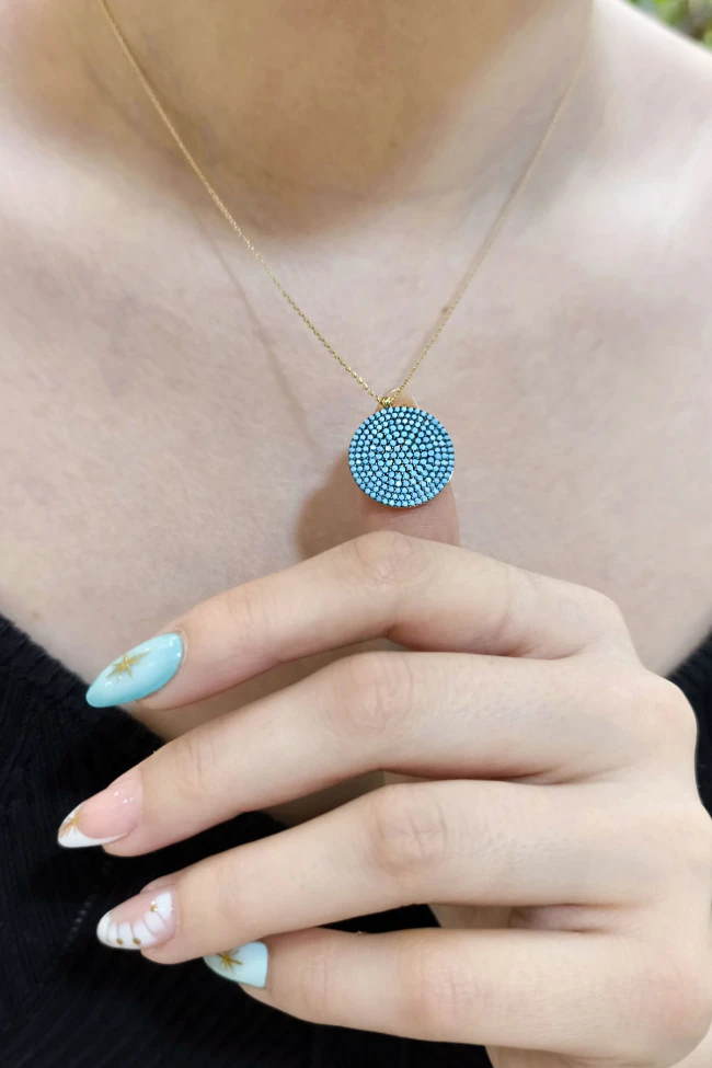 45 Cm zincirli 3.35 gr. 2.2 cm boyutunda firuze taşlı model 14 ayar altın spor kolye. Farklı zincirlerinizle bir arada kombine olarak kullanabileceğiniz gibi farklı zincir boylarıyla da satın alabileceğiniz harika bir model.