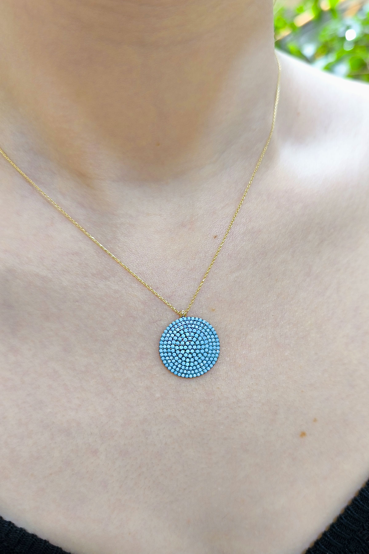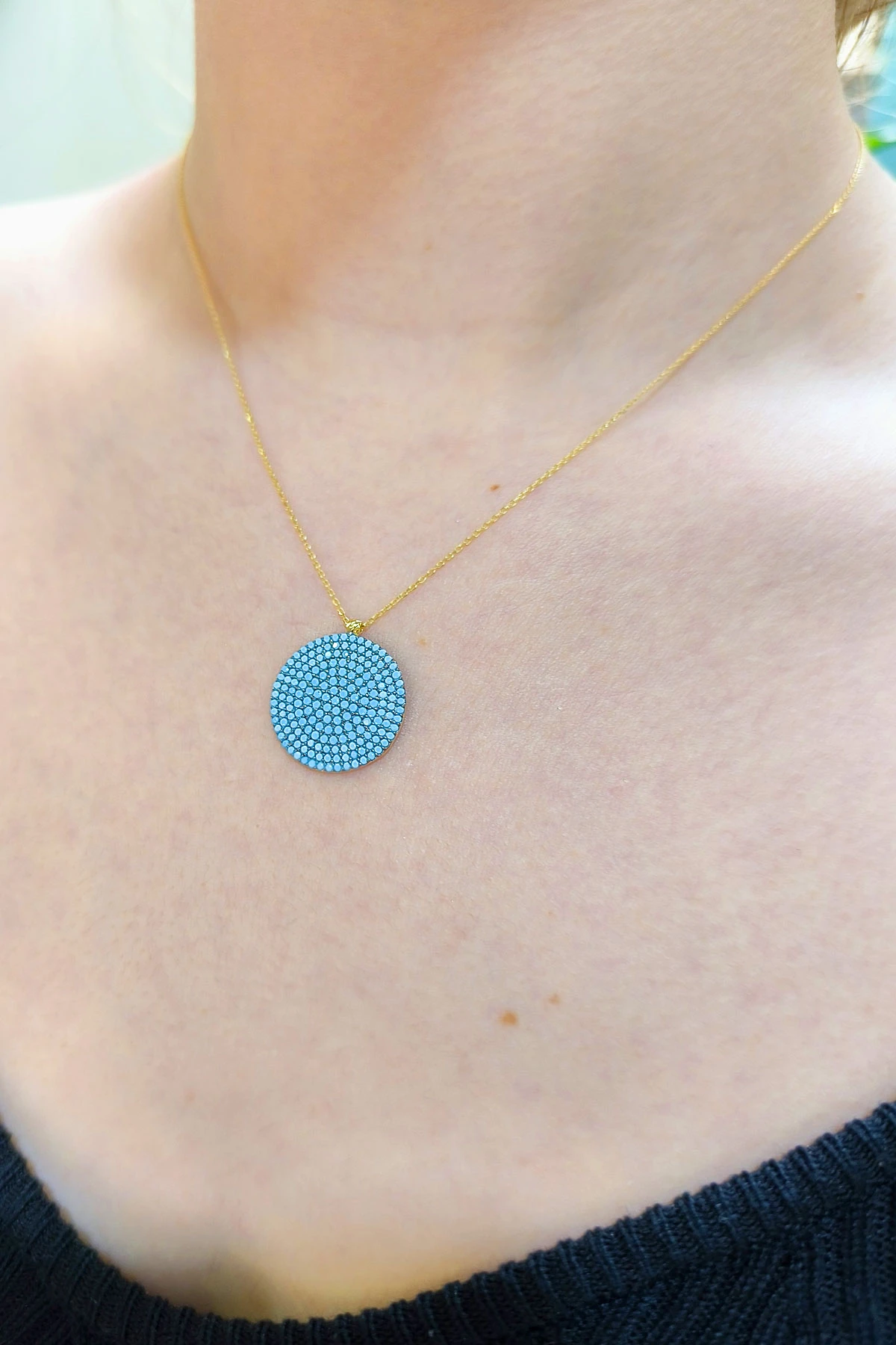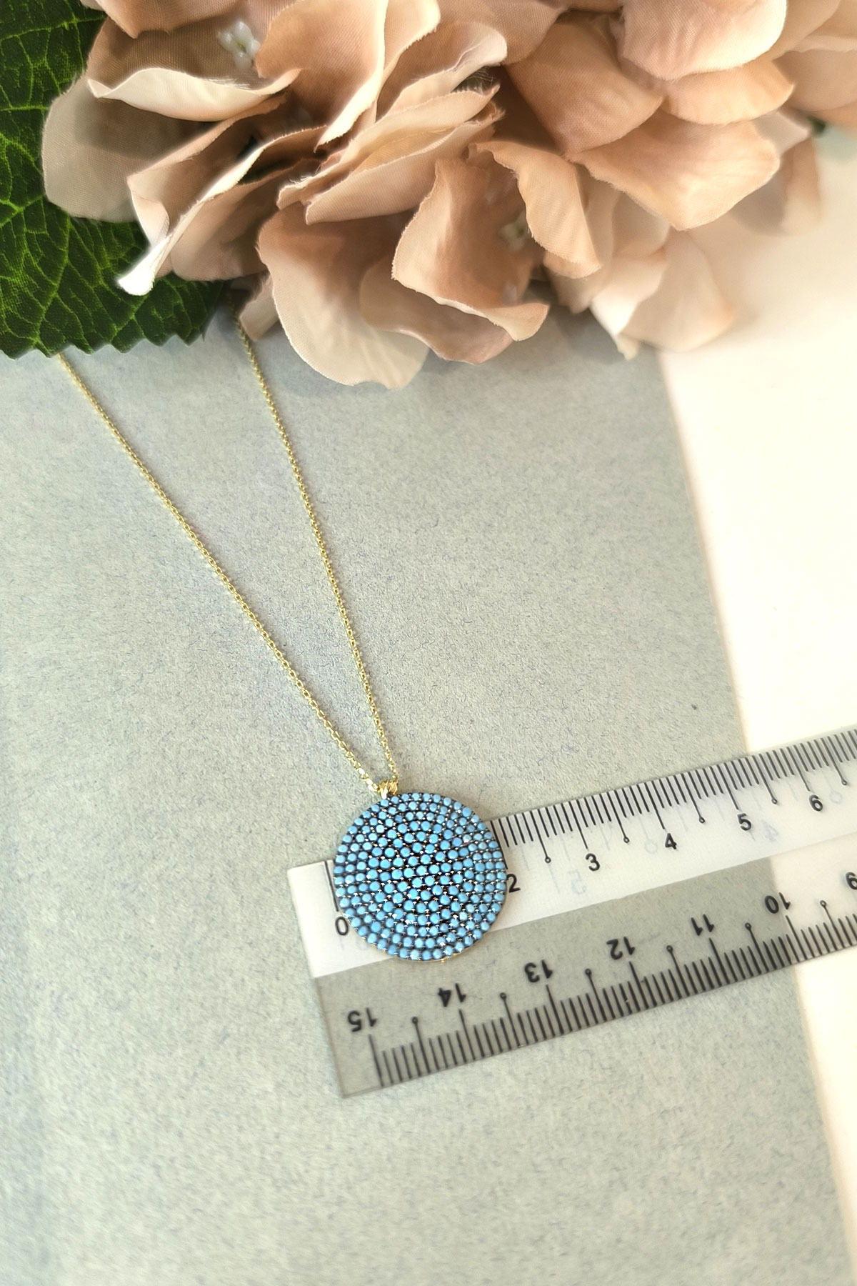 45 Cm zincirli 3.35 gr. 2.2 cm boyutunda firuze taşlı model 14 ayar altın spor kolye. Farklı zincirlerinizle bir arada kombine olarak kullanabileceğiniz gibi farklı zincir boylarıyla da satın alabileceğiniz harika bir model.