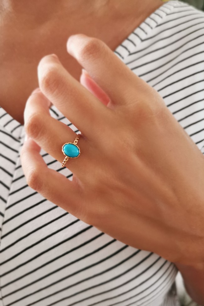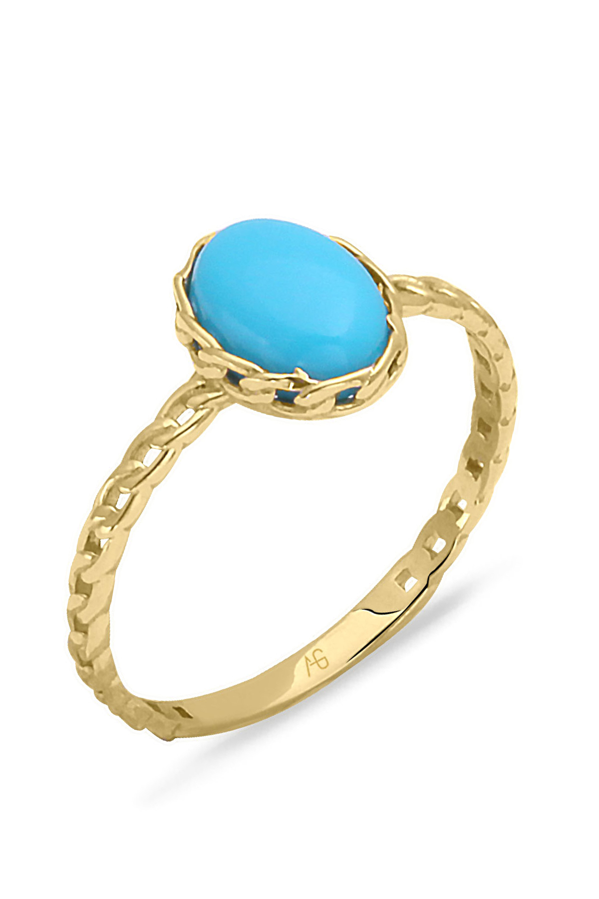 1.40 Gram Ağırlığında Sade Tasarımlı Şık Bir Tarzı Olan Günlük Kullanıma Uygun 14 Ayar Altın Zincir Kol Firuze Taşlı Yüzük.
