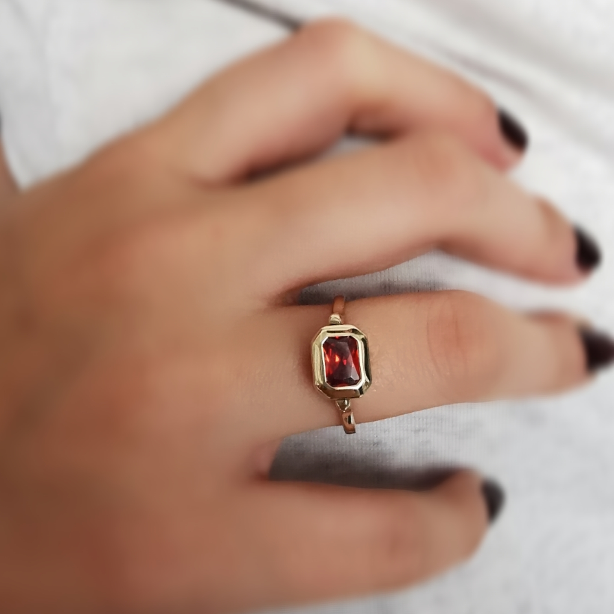 Taş Yuvası Döner 14 Ayar Sarı Altın Garnet Baget Taşlı Spor Yüzük. Işıltınıza ve tarzınıza eşlik edecek harika bir yeni model. *Ürünlerimiz faturalıdır güvenle satın alabilirsiniz, özel hediye kutusunda ücretsiz kargo ile gönderilecektir.