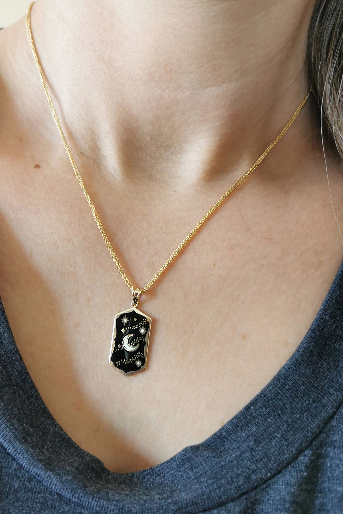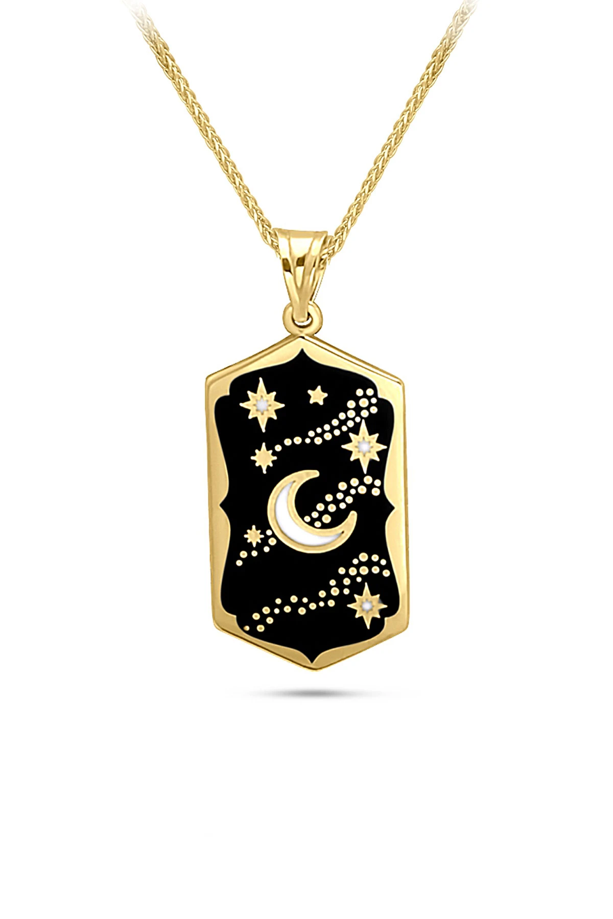 4.30 gr. 2.7 cm boyutunda siyah mineli tasarım model 14 ayar altın gece kolye.