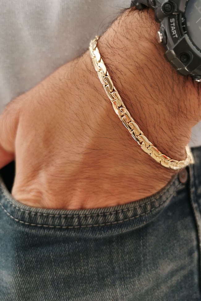 Modern Şehirli Tarz 21 Cm Boyunda 5 Mm Eninde Geçmeli Forse 8.95 Gr. Ağırlığında 14 Ayar Altın Unisex Bileklik.
