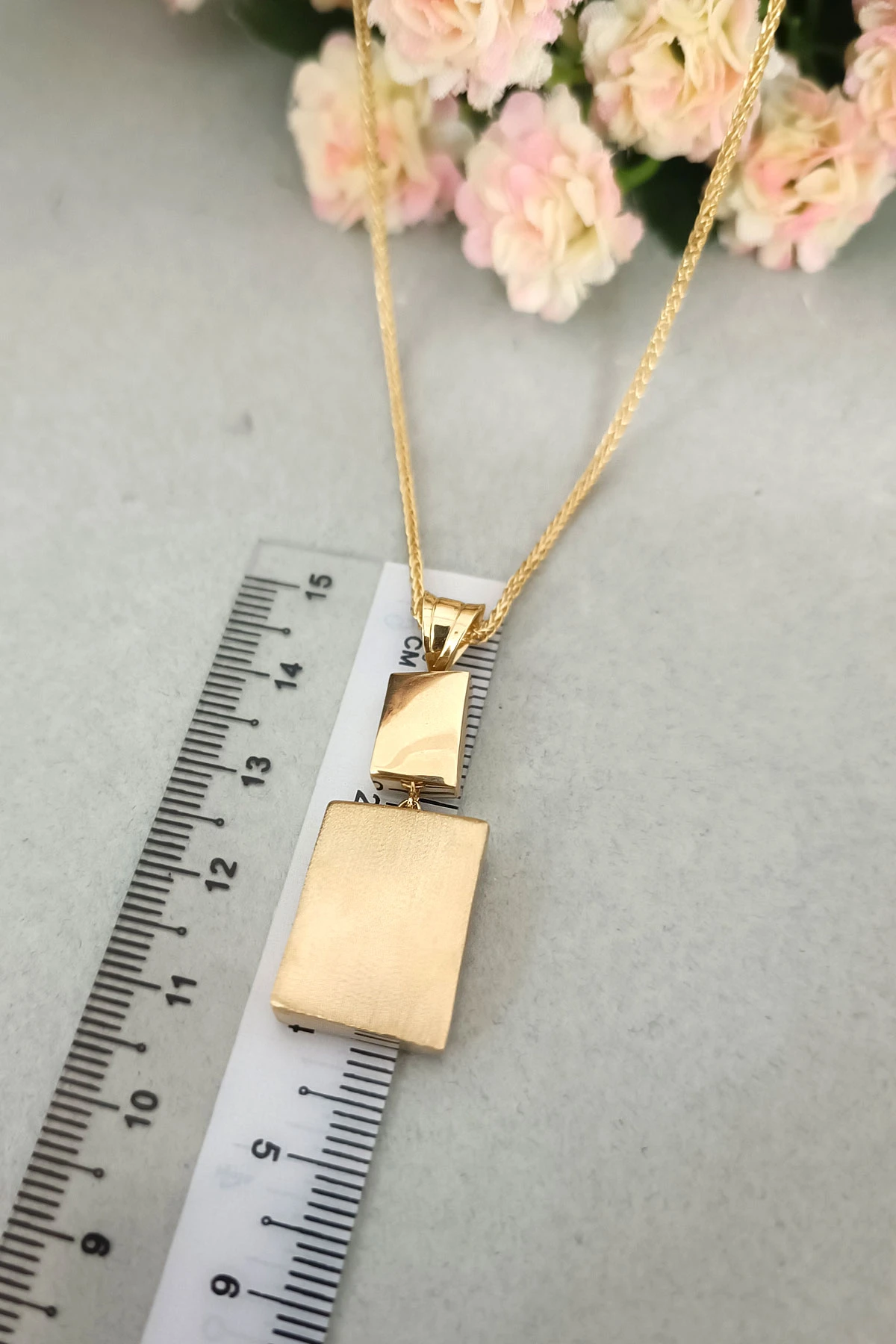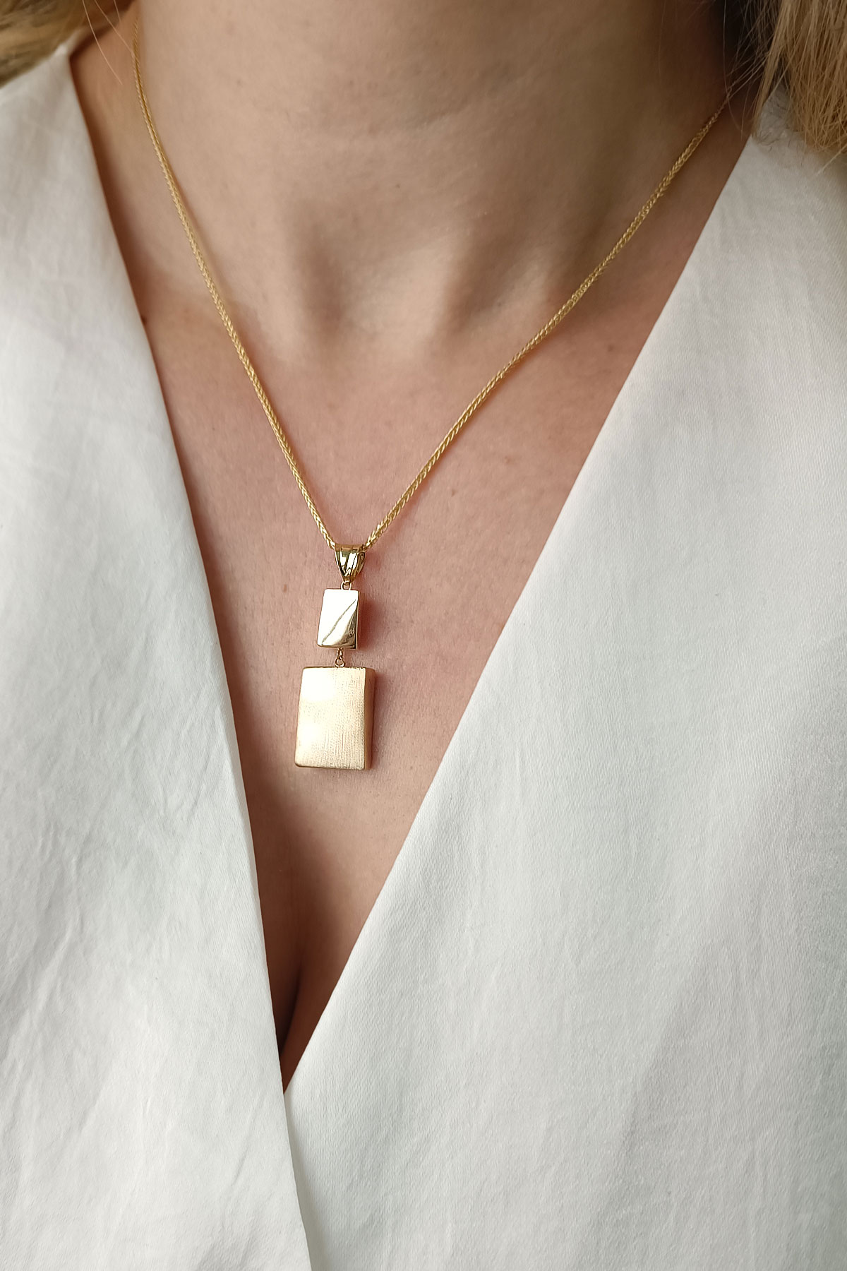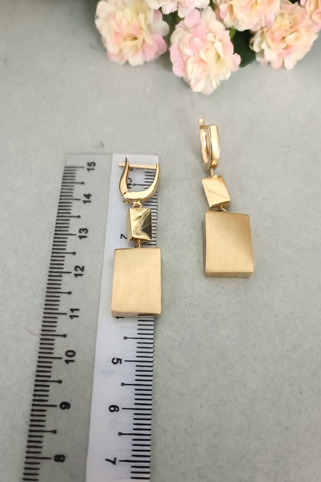 14 Ayar gösterişli ve şık tasarımı ile modern ışıl ışıl duruşa da sahip günlük kullanıma uygun 9.75 gram ağırlığında taşsız dikdörtgen tasarım altın füzyon ikili takım.